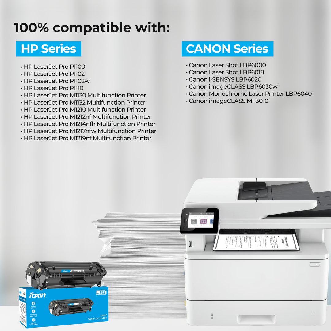 | Compatibility Options | HP LaserJet Pro Series (P1102, P1102w, M1132 MFP, M1212nf MFP, M1214nfh MFP, M1217nfw MFP, HotSpot LaserJet Pro M1218nfs MFP), Canon Laser Shot Series (LBP6000, LBP6000B, i-SENSYS LBP6020, LBP6020B, imageCLASS MF3010) |