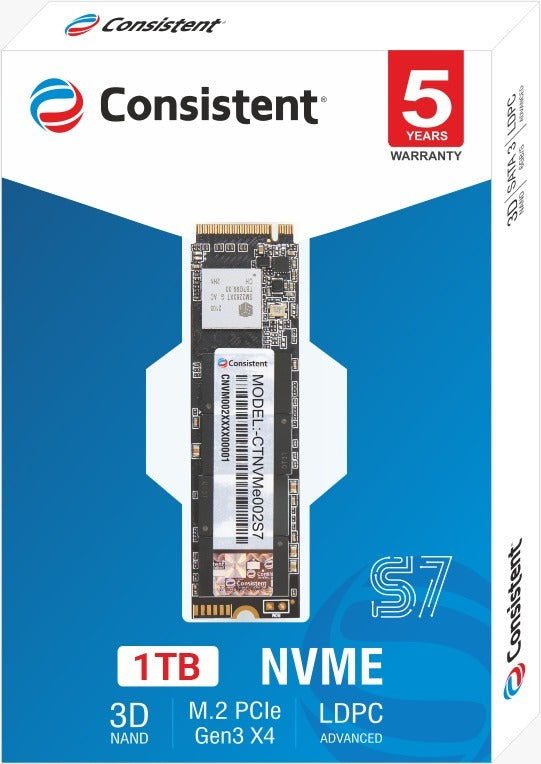 Consistent 1 TB NVMe PCIe M.2 SSD 2280, 3D NAND with SLC Cache, Up to 3000MB/s, 5 Years Warranty High-speed PCIe Gen 3x4 interface with read speeds up to 3500MB/s (1TB models) Supports NVMe 1.3, Host Memory Buffer (HMB), and SLC Cache to deliver high and efficient performance PCIe Gen 3.0 x4 NVMe, Next Level Performance MTBF is Expressed in 2 Million Hours, 5 year warranty replacement Use the electronic chip control to replace traditional mechanical structure and provide high data security 3D NAND flash optimizes the capacity, Performance and stability