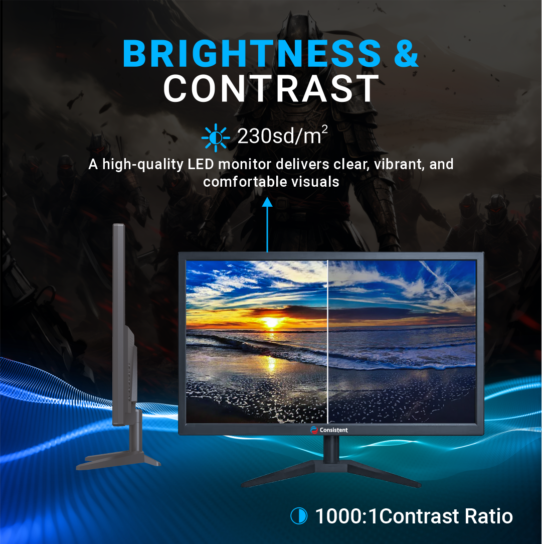 Display: 22" Full HD (1920 x 1080) Wide Angle (178 Deg ) IPS Panel Monitor Full HD| IPS | Connectivity: HDMI x 1, D-Sub x 1, DisplayPort x 1 3 Side Virtually Borderless Design & VESA Wallmount (75 x 75) Compatible In the Box: 1.5m Power Cable 16A, 1.5m HDMI Cable Refreh rate 60hz, 27Watt voltage