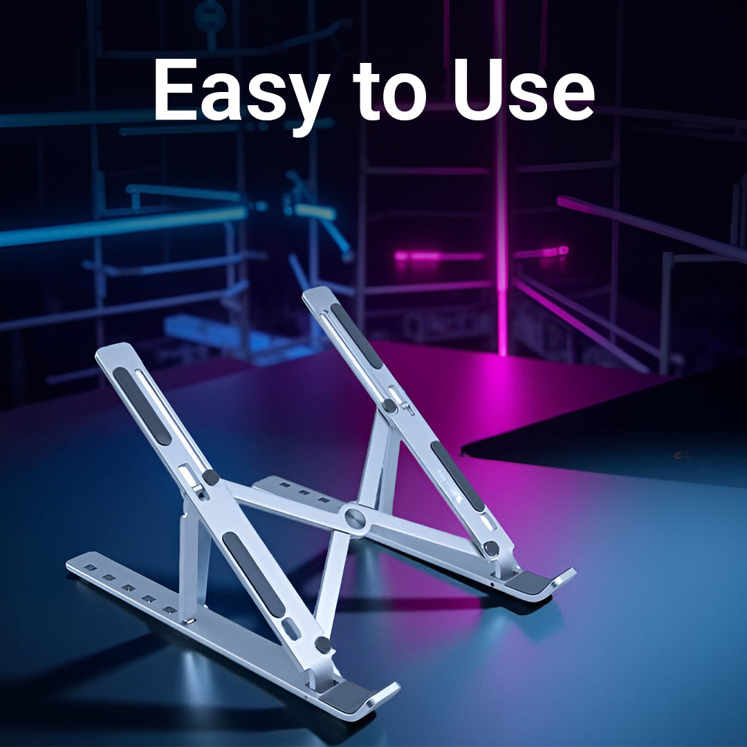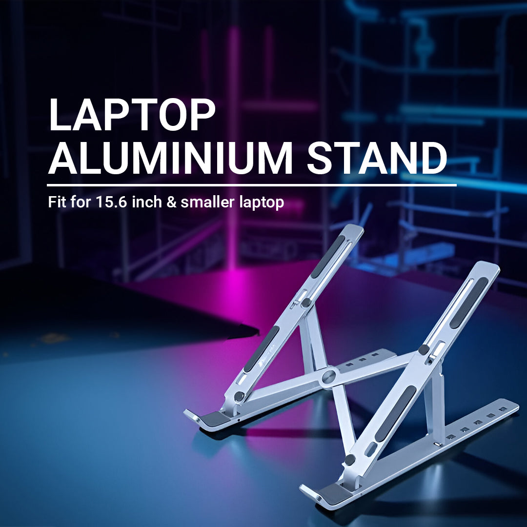 ERGONOMIC DESIGN: Elevates laptop screen to eye level, promoting better posture and reducing neck strain during extended work sessions ADJUSTABLE HEIGHT: Multiple angle settings allow customisation of viewing position for optimal comfort and productivity PREMIUM CONSTRUCTION: Made from durable aluminium alloy that provides excellent stability while remaining lightweight and portable VENTILATION FEATURES: Open design promotes airflow around your laptop, helping prevent overheating during intensive use UNIVERSAL COMPATIBILITY: Suitable for laptops ranging from 28 cm to 43 cm in width, accommodating most popular laptop models