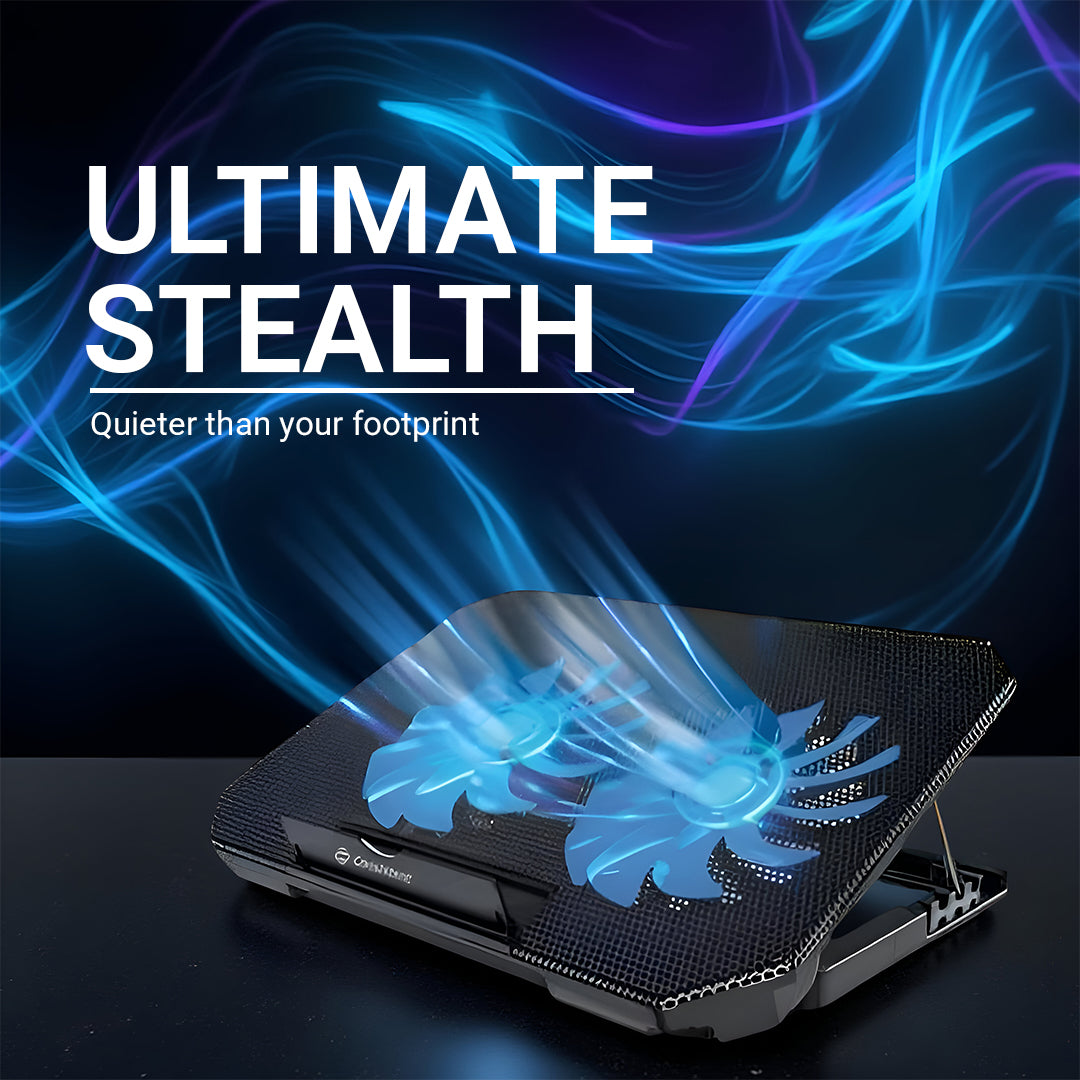COOLING PERFORMANCE: Features multiple high-performance fans that efficiently dissipate heat from your laptop for optimal temperature control ERGONOMIC DESIGN: Adjustable height settings and tilt angles provide comfortable viewing and typing positions while using your laptop COMPATIBILITY: Suitable for laptops ranging from 30 cm to 43 cm in size, with sturdy support brackets to ensure stability POWER SOURCE: USB-powered operation with dual USB ports - one for powering the cooling pad and an extra port for accessories