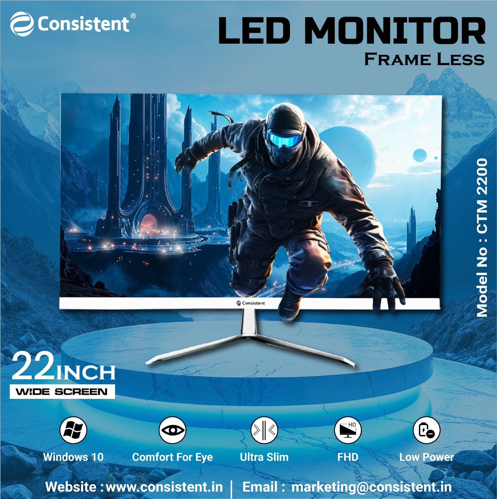 Display: 21.5" Full HD (1920 x 1080) Wide Angle (178 Deg ) IPS Panel Monitor Full HD| IPS | Connectivity: HDMI x 1, D-Sub x 1, DisplayPort x 1 3 Side Virtually Borderless Design & VESA Wallmount (75 x 75) Compatible In the Box: 1.5m Power Cable 16A, 1.5m HDMI Cable