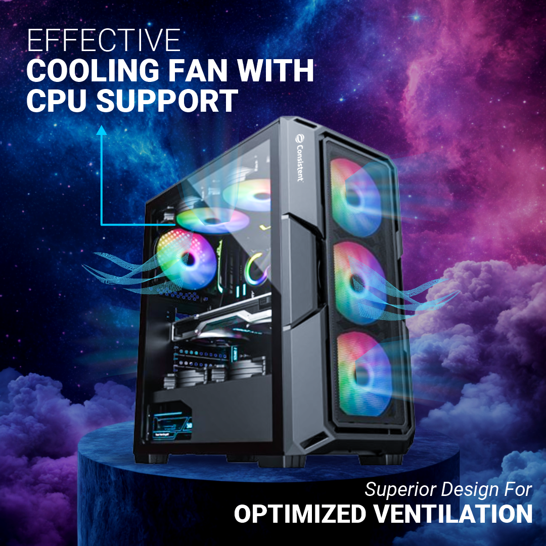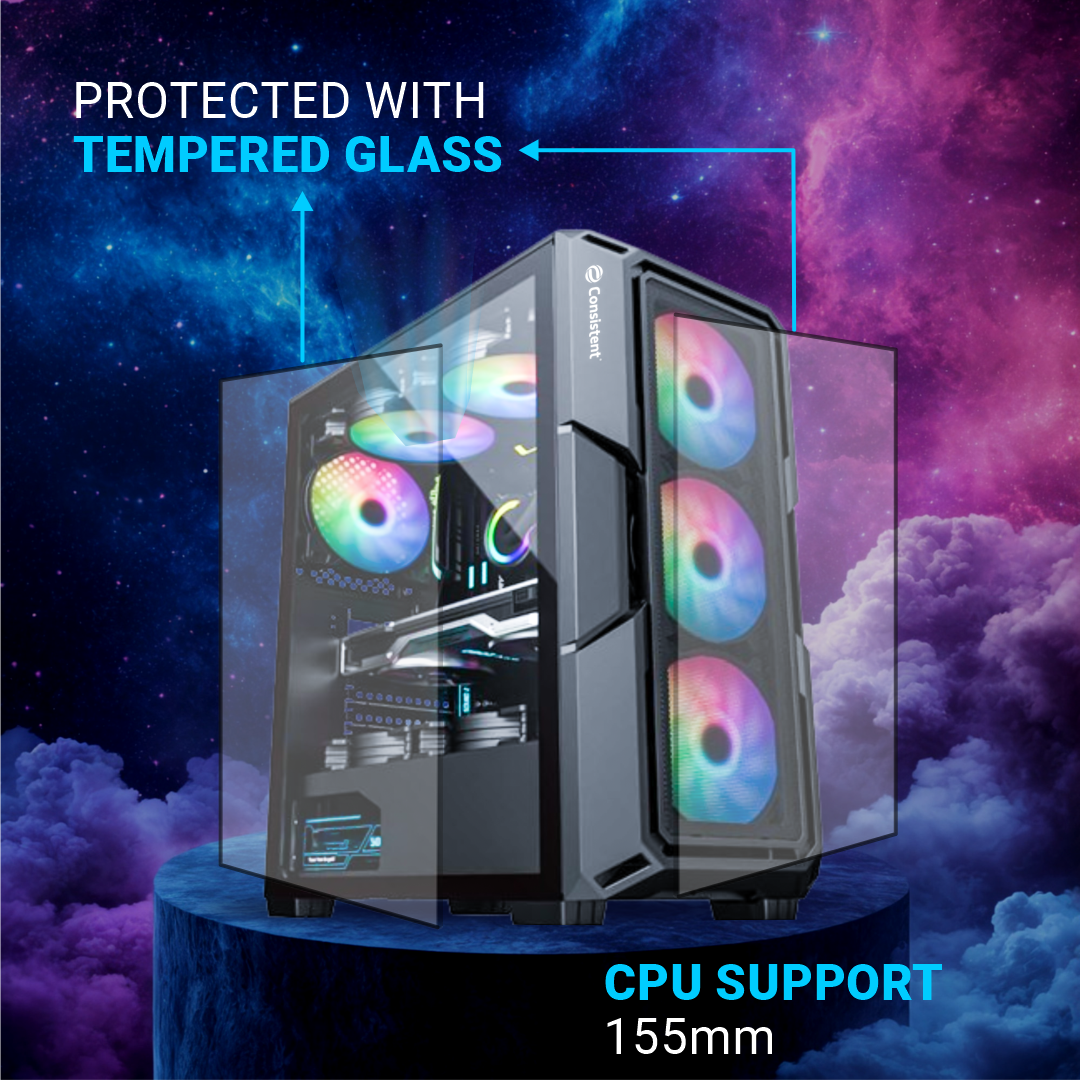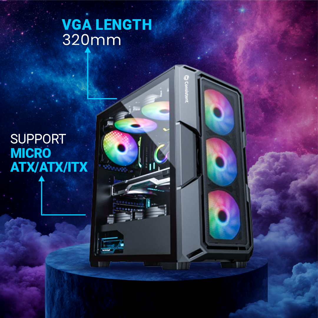Motherboard Support ATX/M-ATX/ITX Black coating and premium tempered glass side panel for showcasing internal components Fan Support - 3 on front panel, 2 on top panel & 1 on back panel USB 2.0*2, 3.0*1