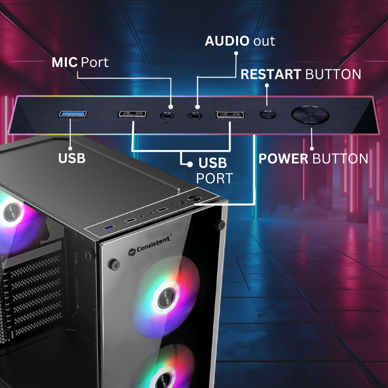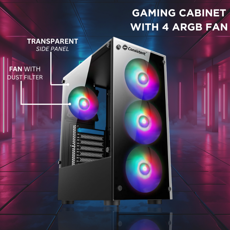Motherboard Support: Micro & Mini ATX Motherboard RGB FAN:Front 3*12cm, Back 1*12cm, 4ARGB Fan with Controller Black Body Case, Black Inside and Glass left side pannel