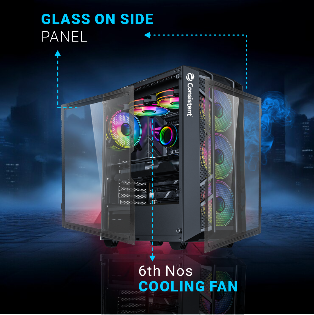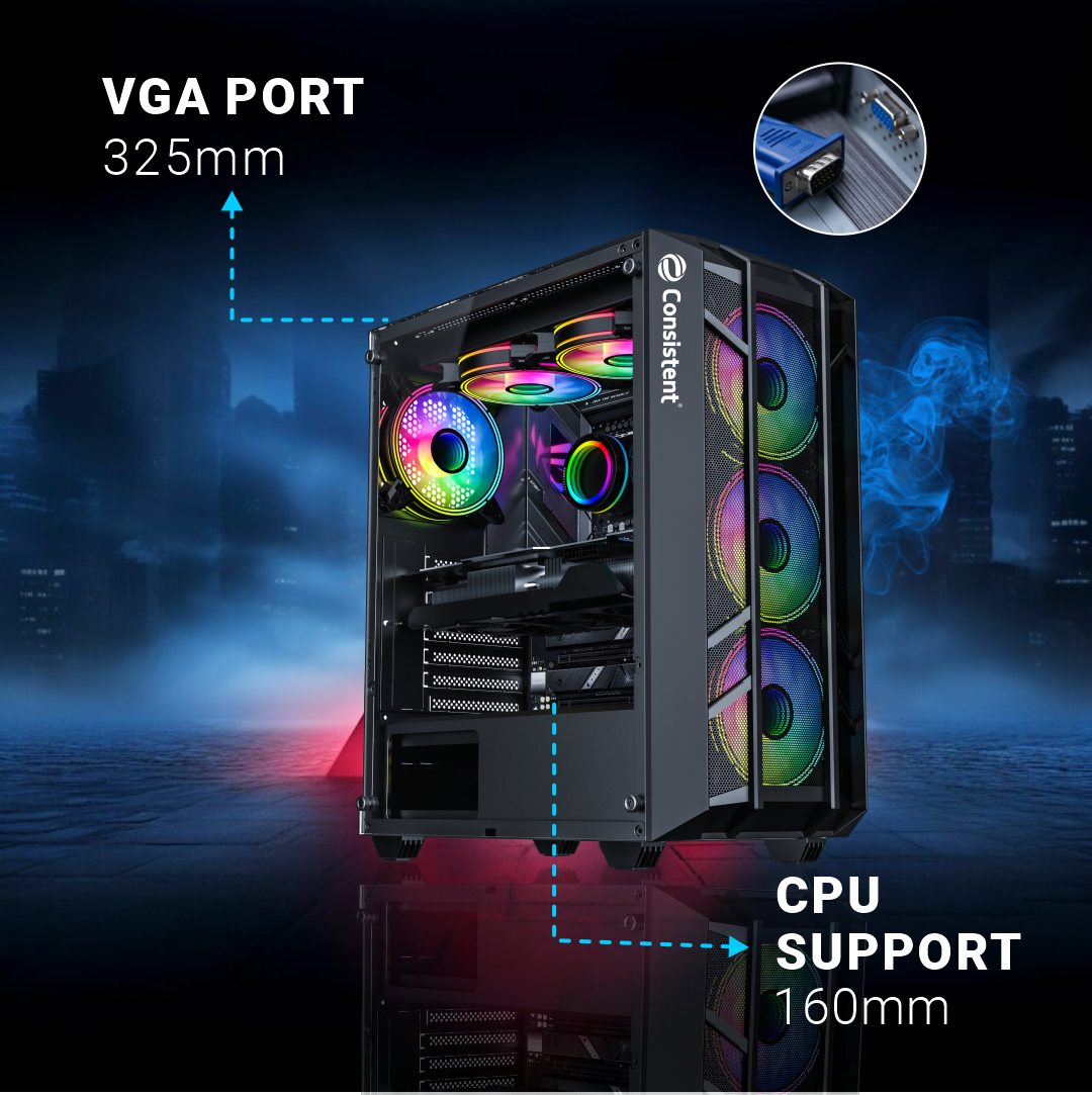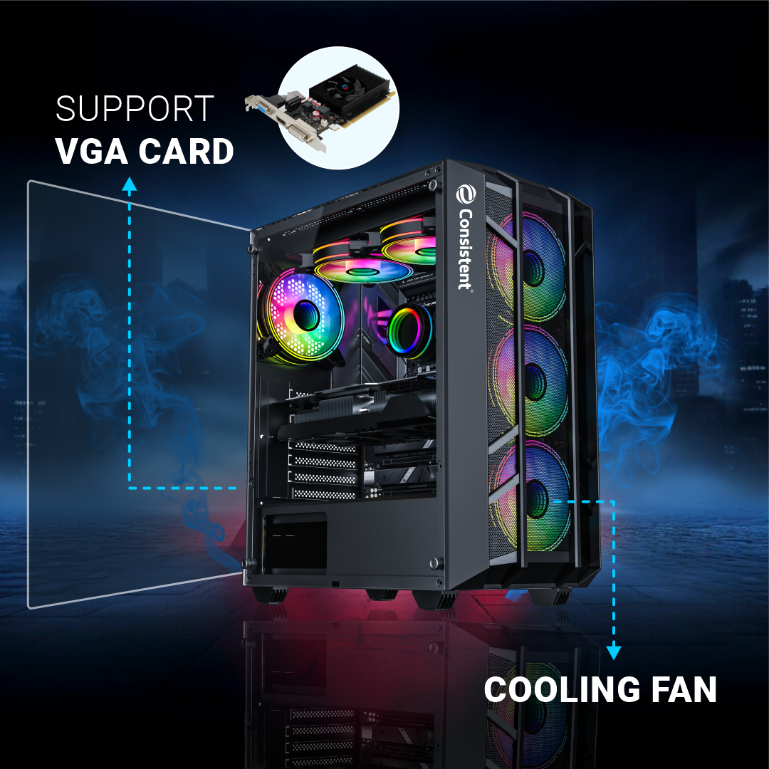 Motherboard Support ATX/M-ATX/ITX Black coating and premium tempered glass side panel for showcasing internal components Fan Support - 3 on front panel, 2 on top panel & 1 on back panel USB 2.0*2, 3.0*1