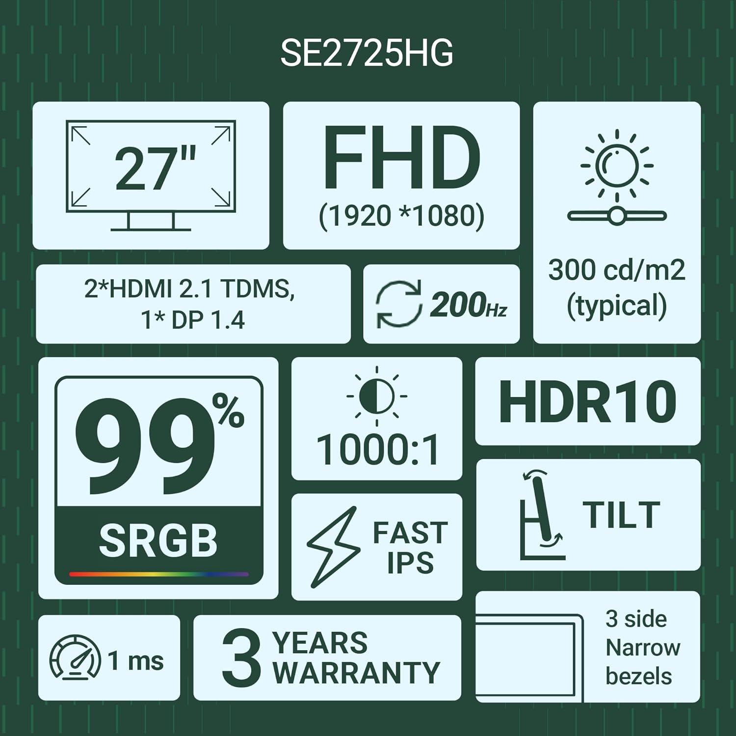 Display: 27‑inch Full HD (1920 × 1080) IPS panel offering sharp, vibrant visuals with wide viewing angles (178° horizontal/vertical).