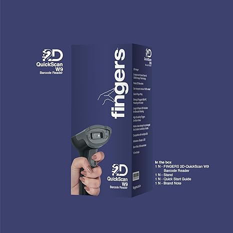 FINGERS 2D-QuickScan W9 USB Wired Barcode Scanner (Reads 1D/2D Codes | Scan Rate: 200 scans/sec | Quick Scan & CMOS Image Technology | Ergonomic Design with U-Shaped LED Indicator)