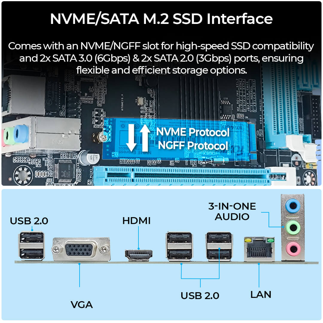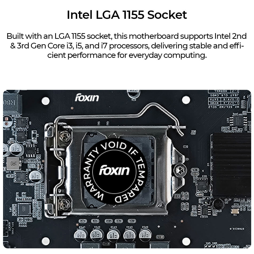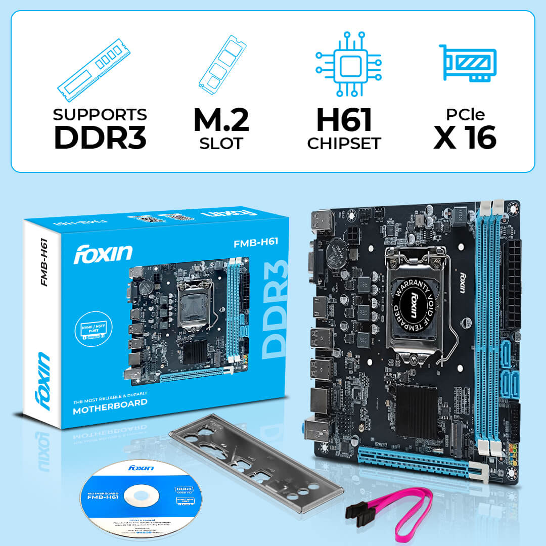 Reliable H61 Motherboard for PC Performance – The Foxin FMB-H61 PRIME motherboard features an LGA 1155 socket with an H61 chipset, ensuring smooth data processing, HD video playback, and 3D graphics support for an enhanced computing experience. Optimized Memory & Compatibility – While it supports dual-channel DDR3 RAM (up to 16GB, 8GB x 2), users seeking a DDR4 motherboard can explore options like Foxin H110 motherboard DDR4 or an LGA 1151 motherboard for upgraded performance. Efficient Data Transfer & Expansion – Equipped with an NVME slot, this PC motherboard offers faster data transfer speeds, making it an excellent choice compared to an H81 motherboard or an H610M motherboard with limited storage options. Versatile Connectivity & High-Quality Audio – Featuring six USB 2.0 ports, VGA & HDMI ports, and HD 6-channel audio, this motherboard for PC delivers both high-quality visuals and immersive sound for a superior user experience. Durability & Extended Warranty – This motherboard delivers dependable performance and includes a 730-day warranty for added reliability.