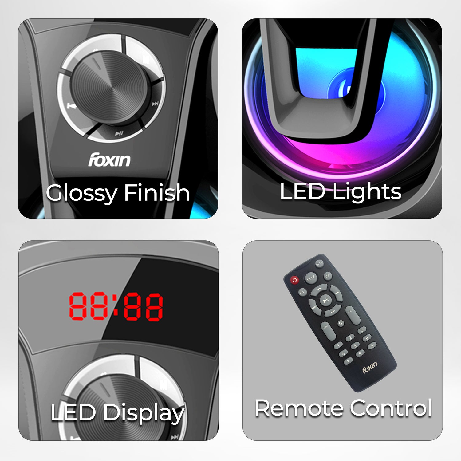 ▶️ 5” Subwoofer ▶️ 90W X 4.1CH system Power (RMS) ▶️ Compatible with Smartphone, laptop, desktop ▶️ Wireless Remote Control ▶️ 3.5mm audio output ▶️ SD-Card Mp3 Music Playback ▶️ FM with Powerful Bass ▶️ Dual Connectivity via Bluetooth v4.2 and AUX ▶️ LED display with different modes ▶️ RGB LED lightning ▶️ 365 Days Warranty from Date of Purchase