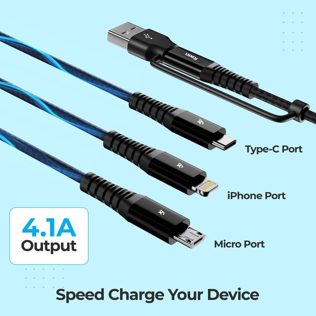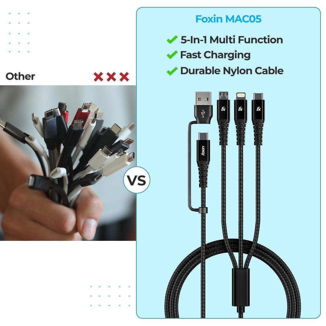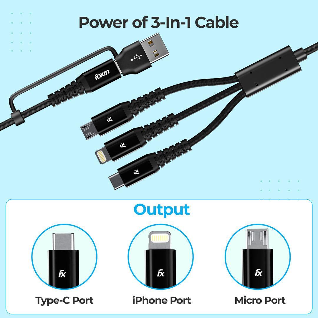 Foxin MAC 05 Dual Input 3 in 1 Nylon Braided 1.5mt 4 Amp