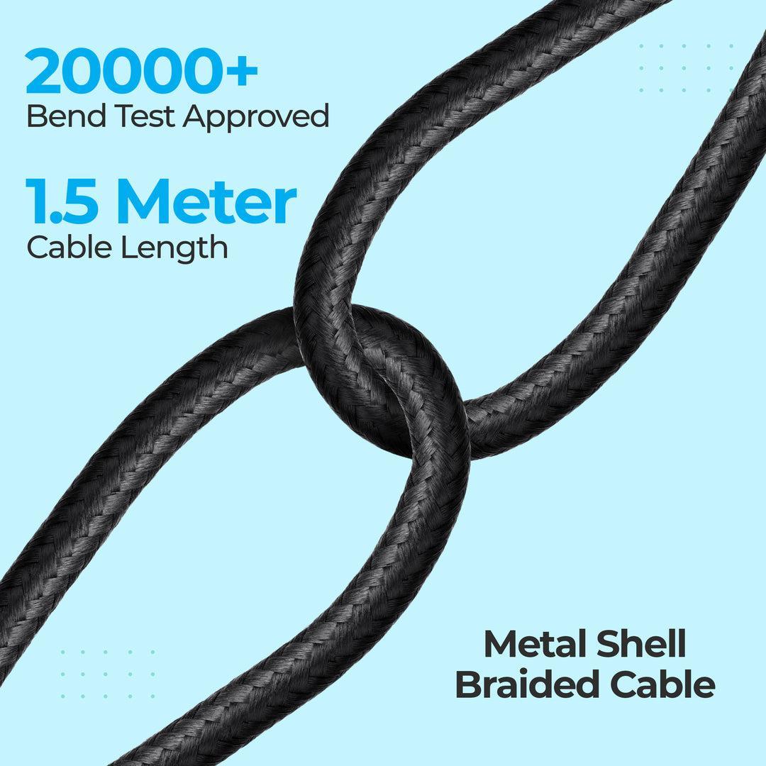 The Nylon Braided Dual Input 3-in-1 Charging USB Cable: Strong, tangle-free, and long-lasting for reliable charging. Versatile USB to Lightning, Type-C, and Micro USB cable. Also supports Type C to Lightning, Type-C, and Micro USB connections. 1.5m long cable with 20W fast charging support. Can handle up to 5V/4.0A charging for efficient power delivery. Flexible, high-quality cable with aluminum alloy metal housings. Universally compatible for seamless connectivity with various devices. Comes with a 6-month warranty. Proudly made in India, ensuring quality and reliability.