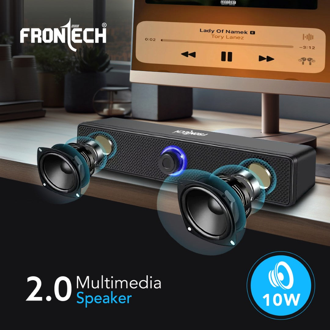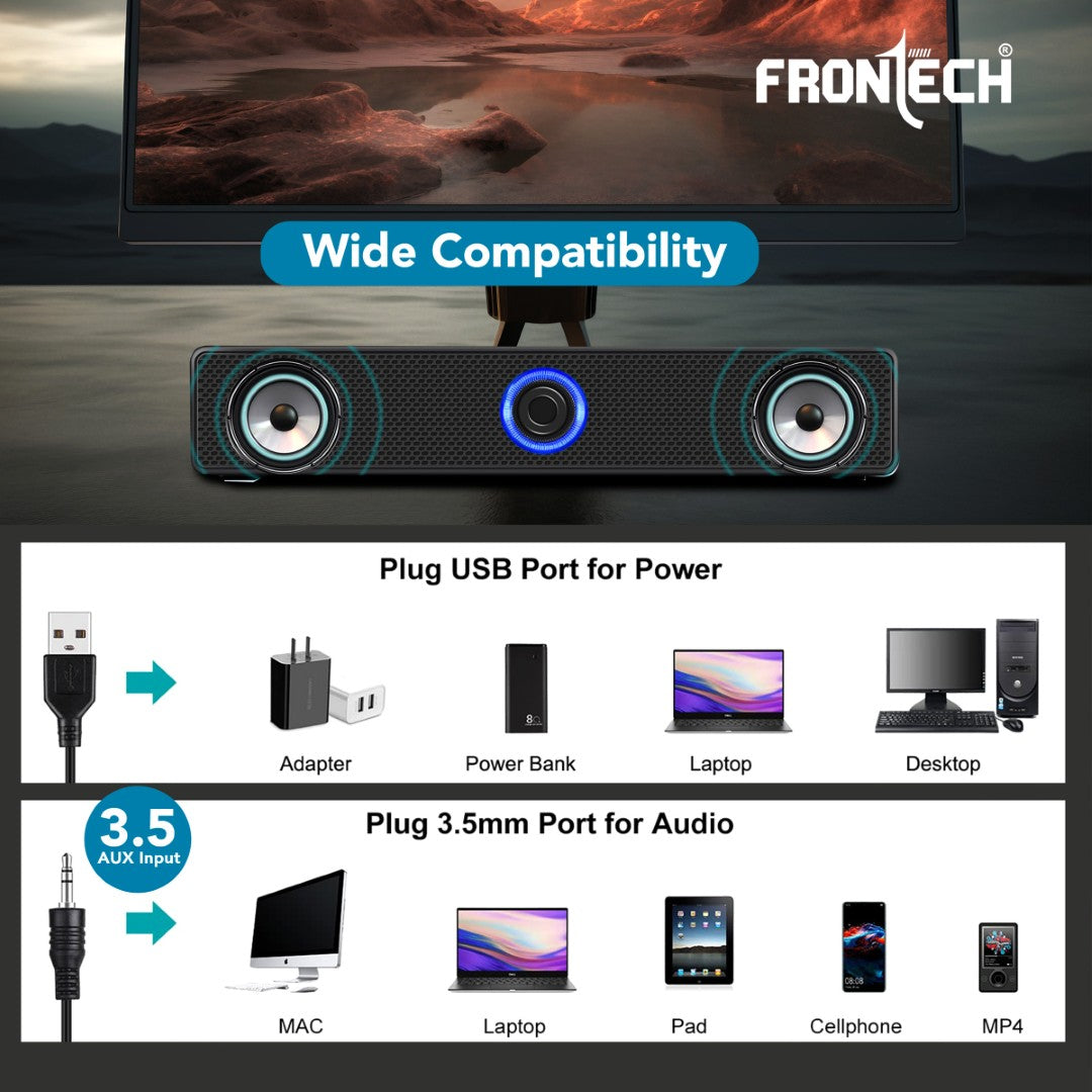 Delivers clear and powerful sound for an immersive listening experience.Easy power source through USB, making it highly portable and convenient. Seamlessly connect to laptops, PCs, and mobile devices for versatile usage.Adds a vibrant touch to your setup with stylish, multi-color lighting effects.Small yet powerful, perfect for both personal and professional audio needs.
