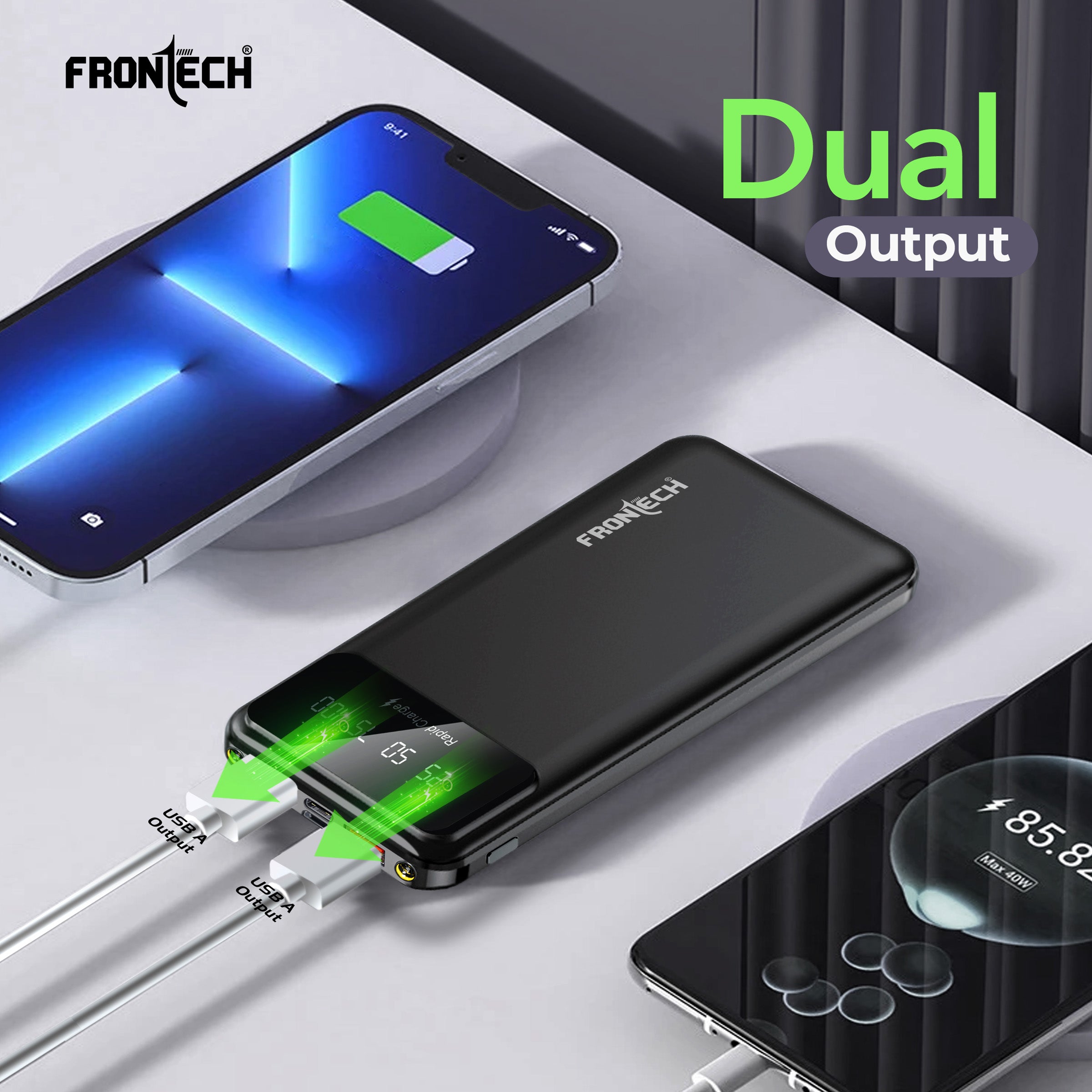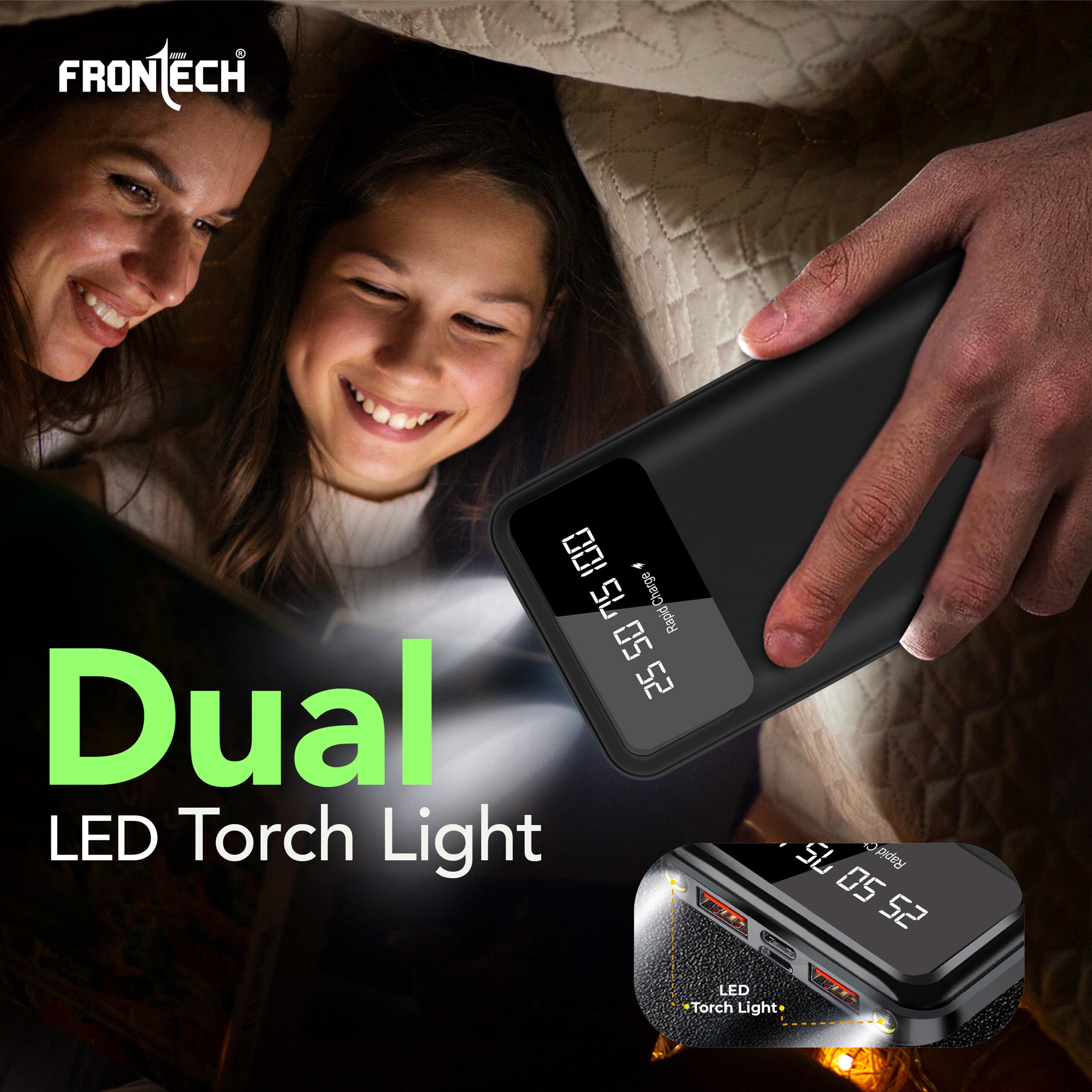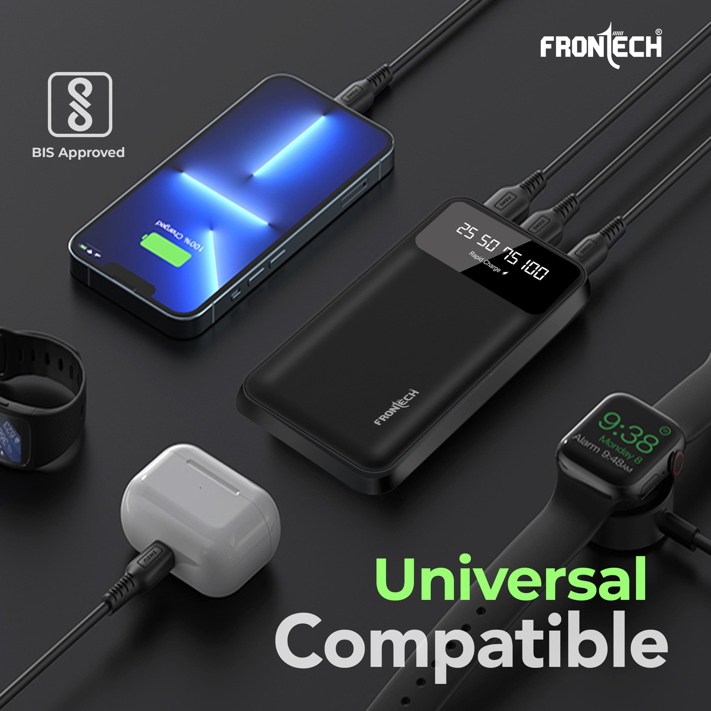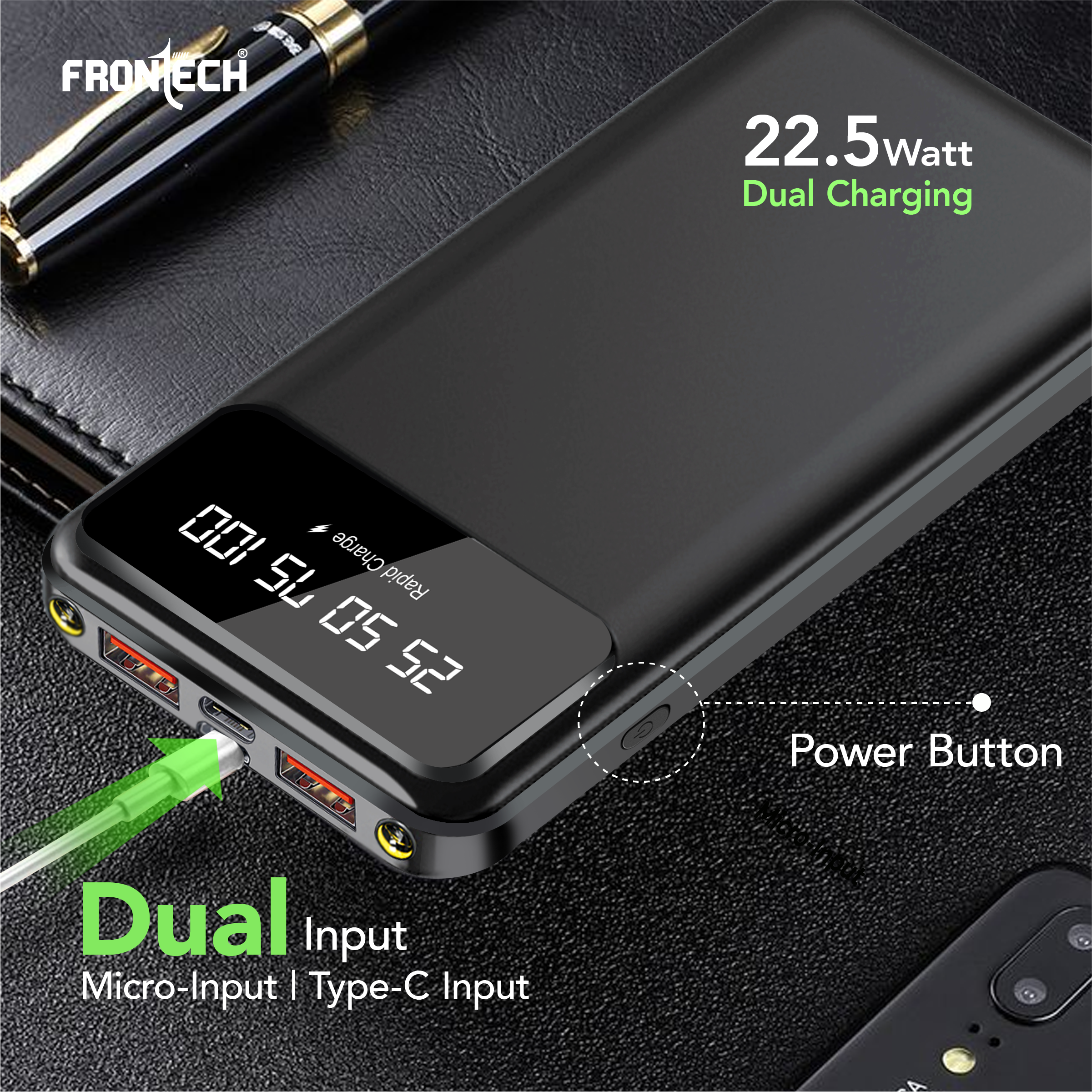 Stay powered up wherever you go with the Frontech PB0006 10000mAh Power Bank. Designed for performance and portability, this fast-charging power bank supports up to 22.5W output to charge your devices swiftly. It features a dual USB output, Type-C and Micro input, and a smart LED display that keeps you informed of the battery level in real-time. Built with a Li-Polymer battery for reliability and safety, the PB0006 is your perfect travel partner. Whether you're charging smartphones, smartwatches, or earbuds, this power bank ensures universal compatibility across devices. The dual LED torch lights offer additional utility during emergencies or camping trips. Crafted with care, BIS-certified, and packed with multi-protection safety mechanisms, the Frontech PB0006 is the ultimate blend of innovation, speed, and convenience.