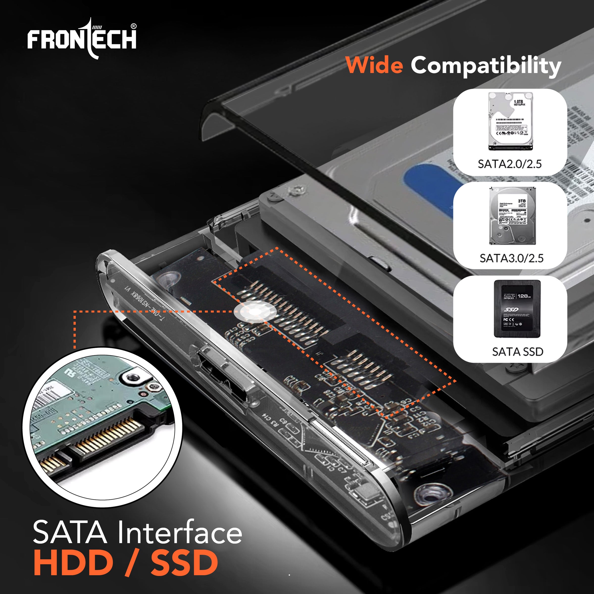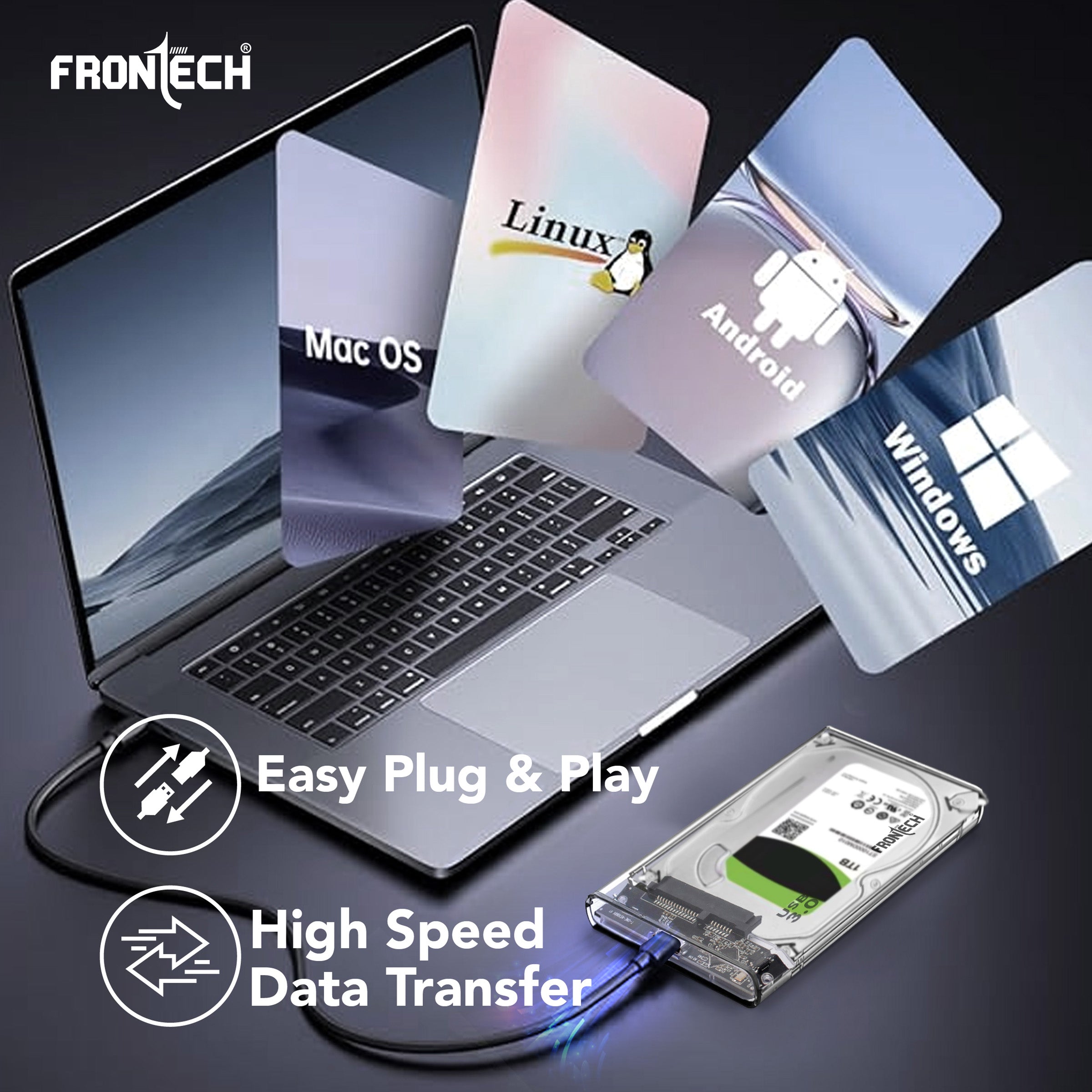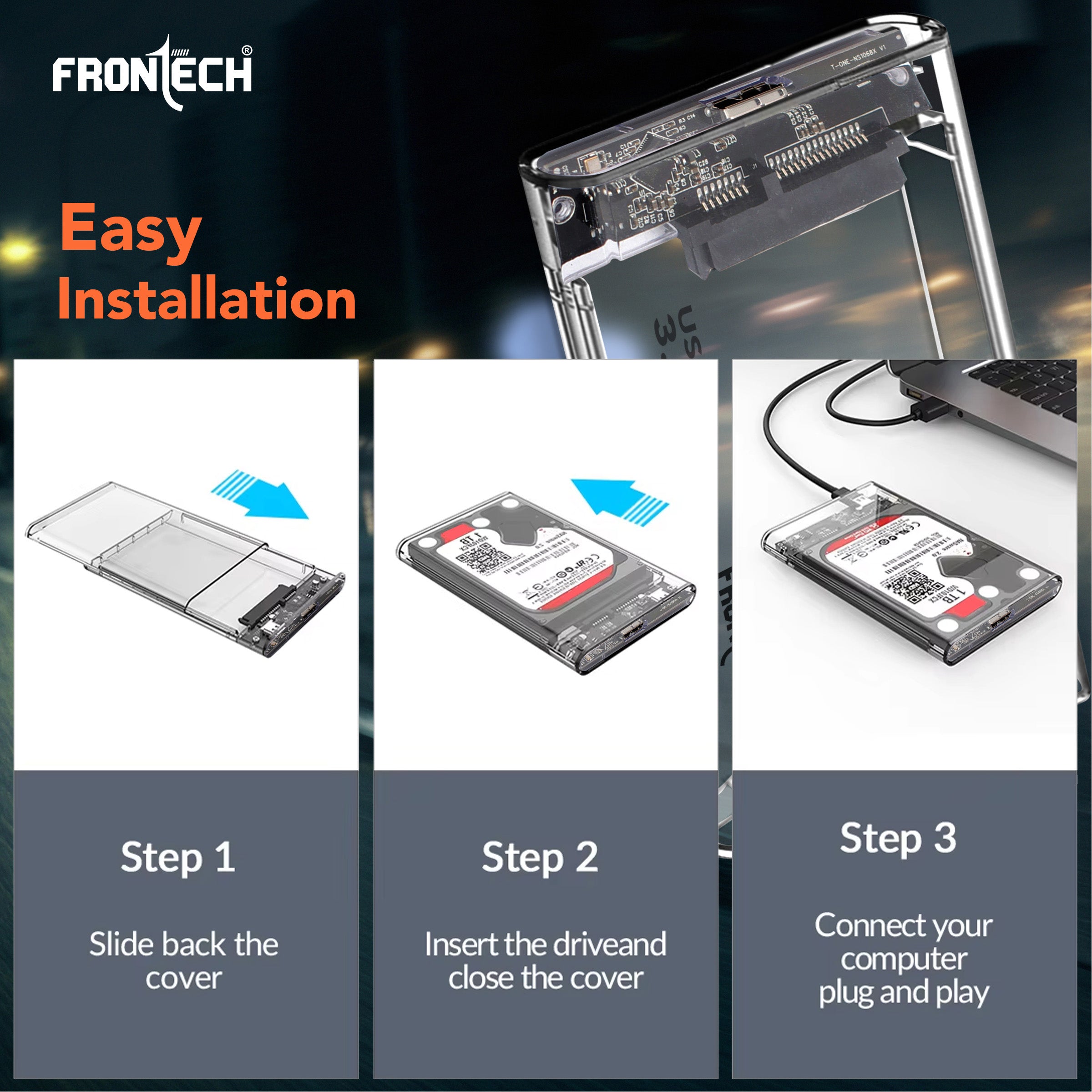 Transparent Design: The Frontech 2.5" External Hard Drive Enclosure boasts an innovative and transparent case, enhancing your storage experience by providing an effortless means of identifying the hard drive within. This unique design not only adds a touch of sophistication but also serves a practical purpose, allowing you to quickly distinguish between different hard drives High-Speed Connectivity: Experience lightning-fast data transfers with the USB 3.0 connector, offering remarkable speeds of up to 5Gbps. This high-speed connectivity ensures that your data moves swiftly and efficiently, meeting the demands of today's data-intensive tasks. Convenient Setup: Say goodbye to cumbersome setups. The tool-free slide installation of this enclosure simplifies the process, making it a breeze for users to set up their hard drives. Enjoy the convenience of plug-and-play functionality, reducing the hassle traditionally associated with hardware installations. Versatile Compatibility: Adaptable to a range of devices, the Frontech 2.5" External Hard Drive Enclosure is compatible with Computers, Laptops, and various other devices. Its versatility makes it an ideal choice for users with different hardware preferences, ensuring a seamless integration into your digital ecosystem. Unmatched Storage Capacity: Unleash the potential of vast storage capacity with support for up to 5 TB. This enclosure is engineered to accommodate your growing storage needs, providing a robust solution for users with substantial data requirements. Whether it's for personal or professional use, the Frontech 2.5" External Hard Drive Enclosure ensures you have ample space for your digital world.