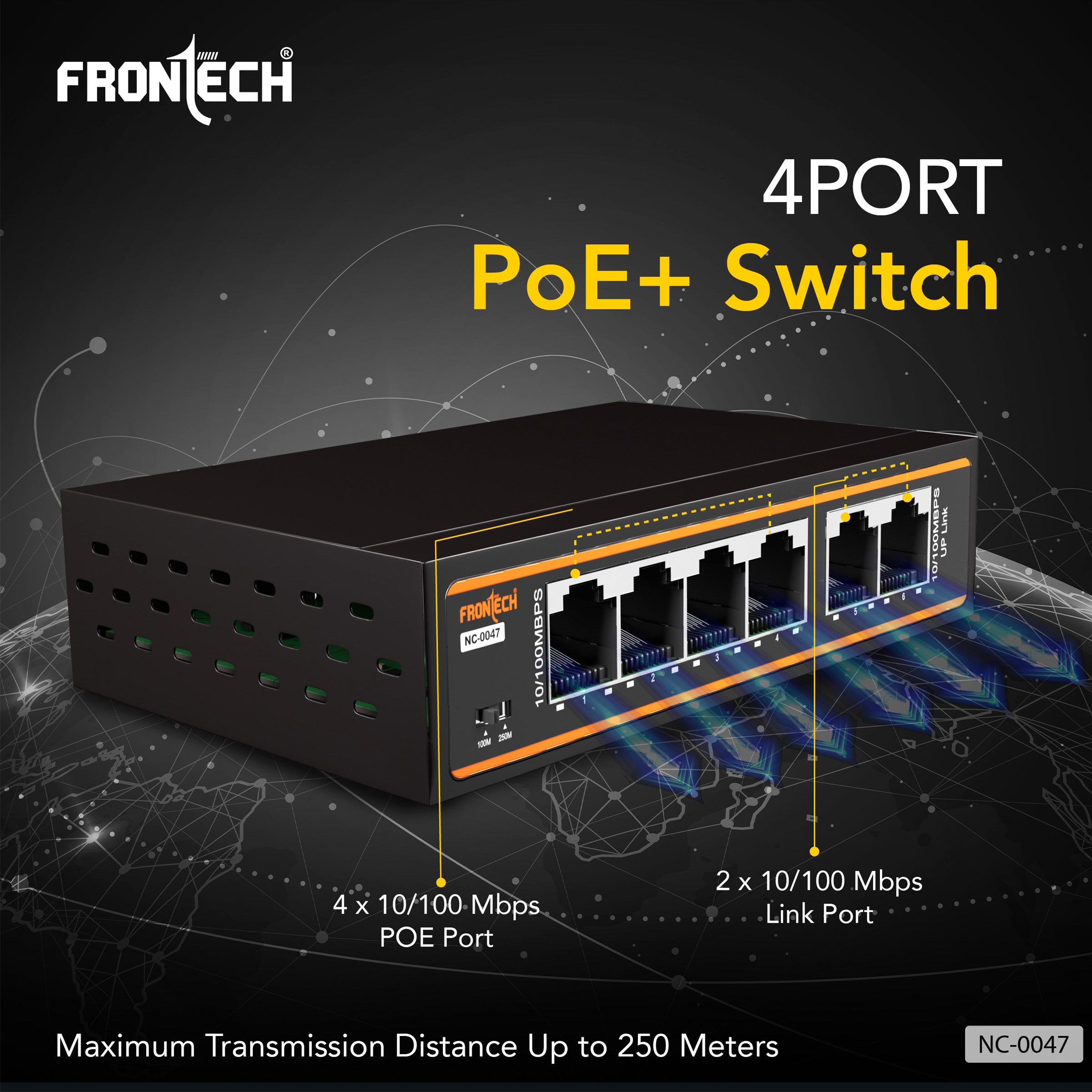 The Frontech NC-0047 4-Port PoE+ Switch features 4 PoE+ ports, 2 uplink ports, a 72W power budget, and up to 250m range. Compact, plug & play, and wall-mountable, it’s perfect for IP cameras, access points, and VoIP phones. Backed by a 2-year warranty.