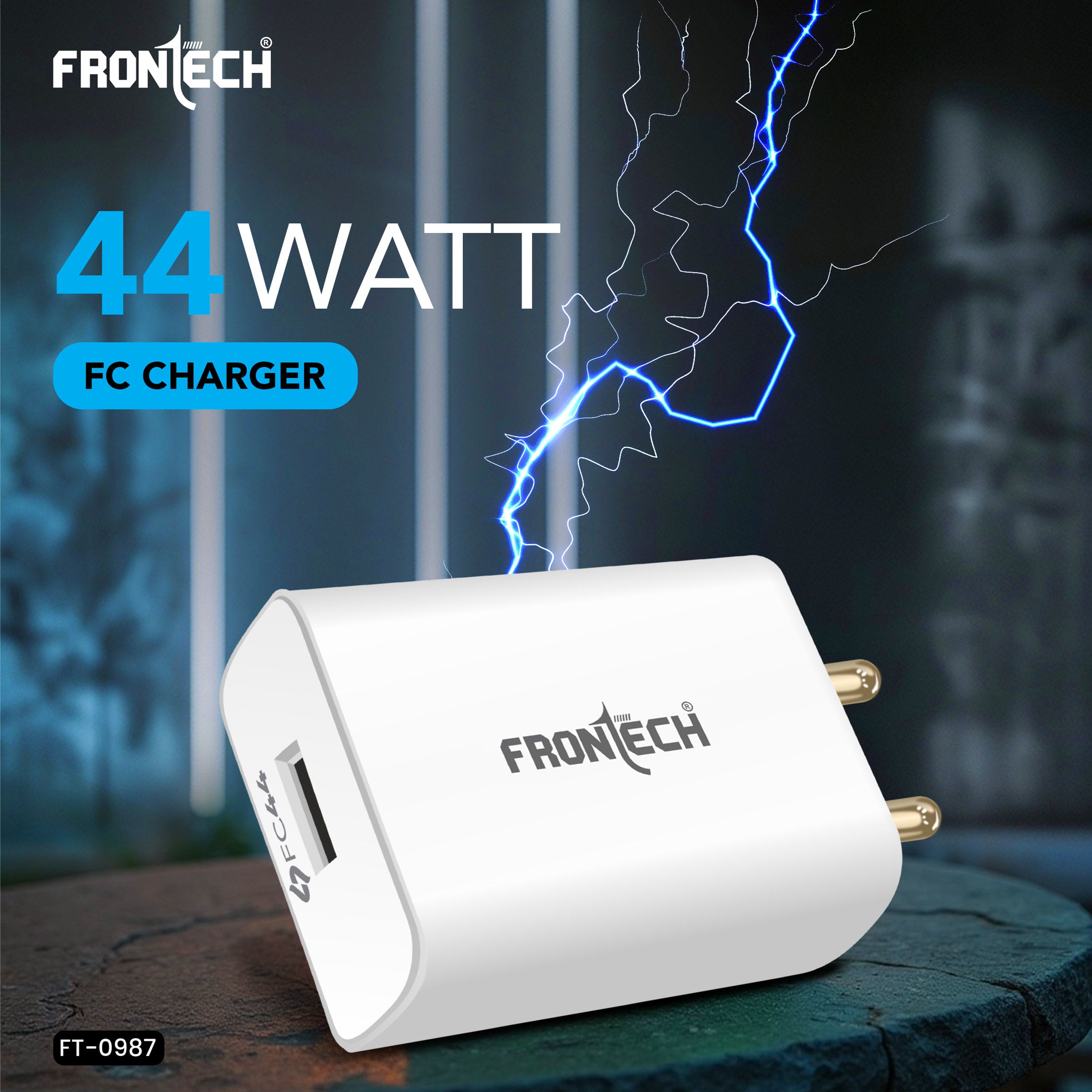 · Powerful and Efficient Charging: This FC Charger provides 44 Watts of power output for fast charging. The USB-A output delivers 5V/3A, 9V/3A, or 11V/4A . · Integrated Smart Chip: The charger features an integrated smart chip for optimized charging . · Safety Features: It includes protection against short circuits , over-charging, and over-heating. · Wide Compatibility: The FT-0987 charger and cable are compatible with all smartphones and tablets and can be used with various devices such as power banks, speakers, earbuds, and neckband Bluetooth headphones . · Compact and Portable Design: The charger has a compact size, making it easy to carry . Its dimensions are. · Power Output: Delivers 44 Watts for fast charging . · USB-A Output: Provides 5V/3A, 9V/3A, or 11V/4A . · Smart Chip: Features an integrated smart chip for optimized charging . · Safety Protections: Includes Short Circuit Protection, Over Charging Protection, and Over Heat Protection .