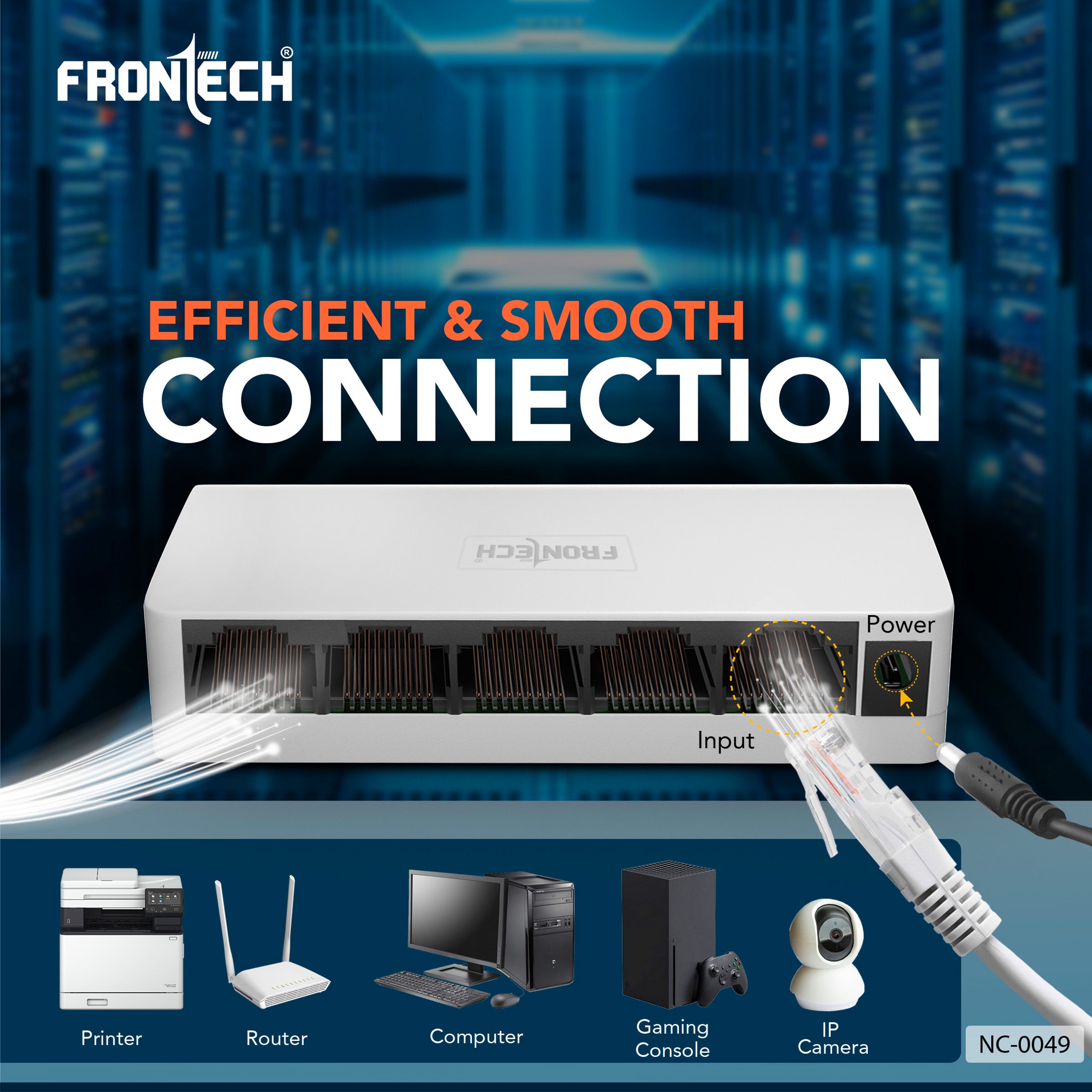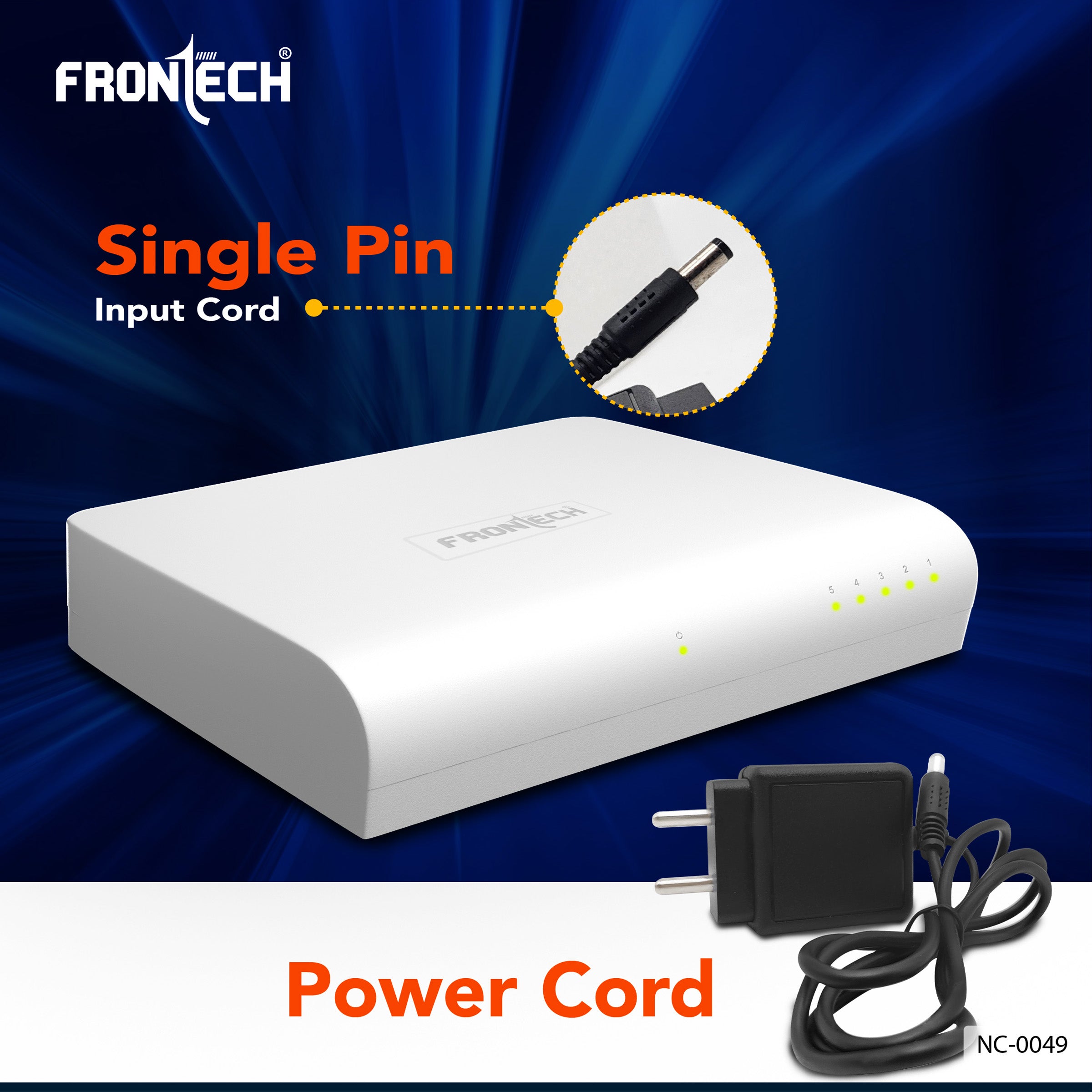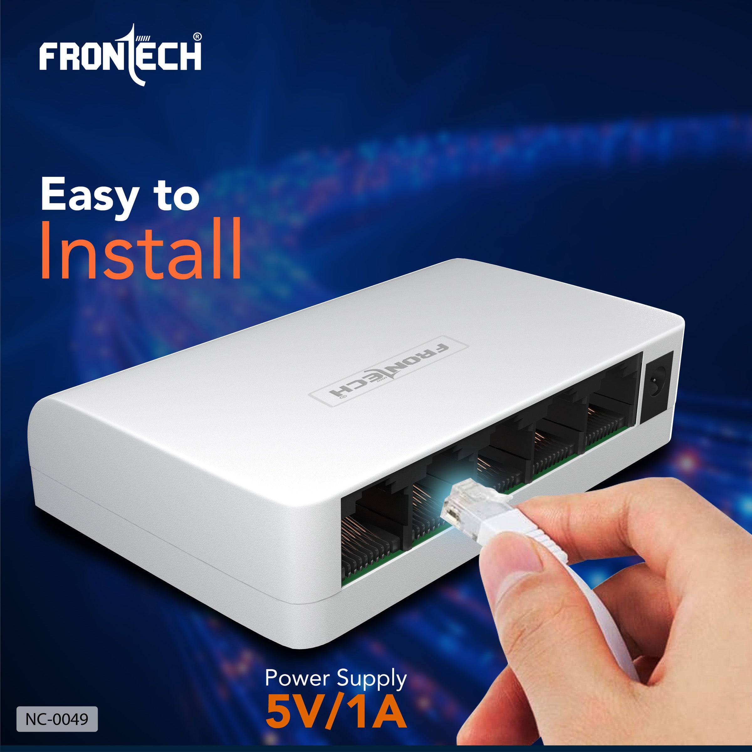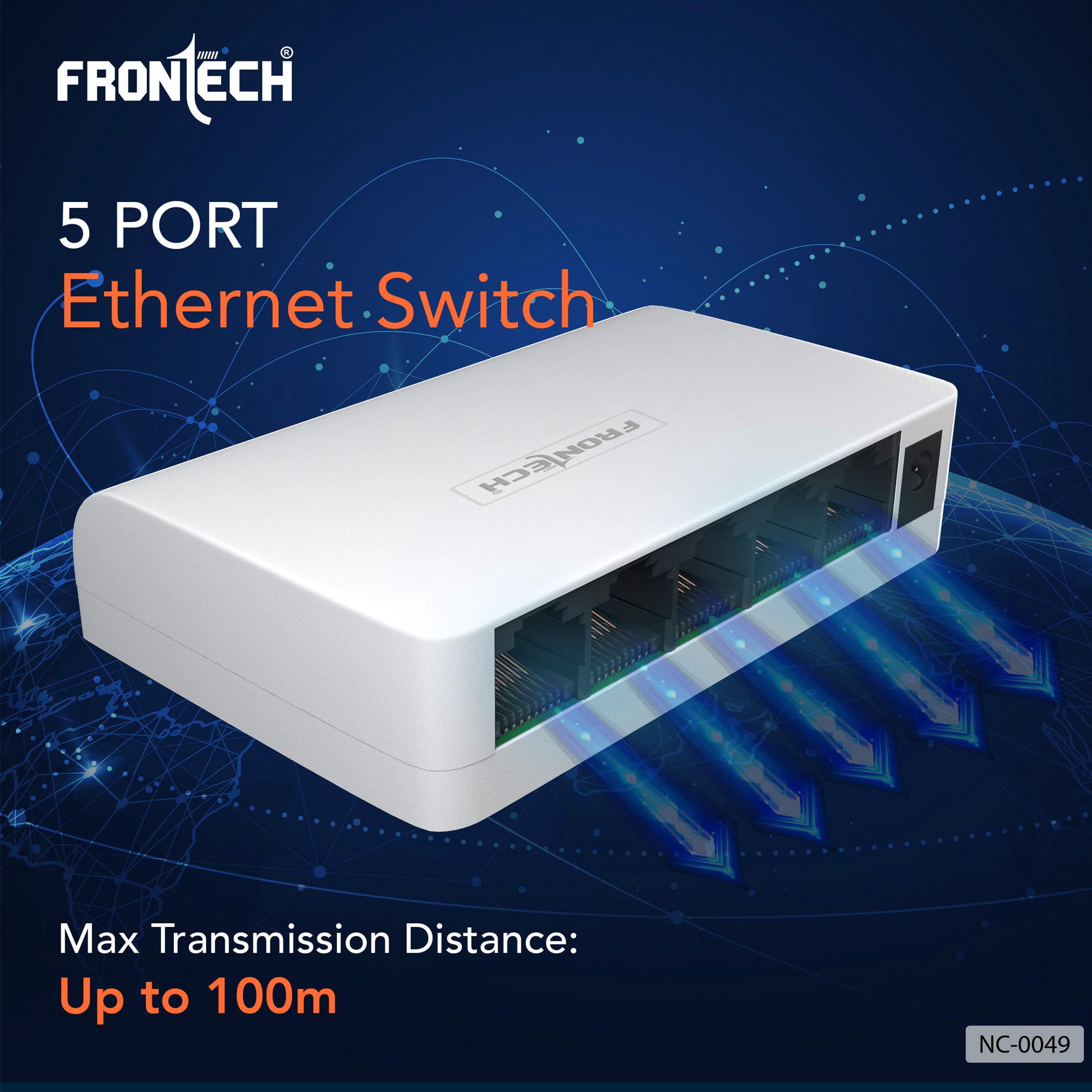 Frontech NC-0049 5-Port Ethernet Switch is a compact, plug-and-play device ideal for fast and stable wired connections in homes, offices, gaming setups, and CCTV systems. Supporting 10/100 Mbps speeds, it connects up to five devices like PCs, routers, printers, and IP cameras with ease. Compliant with IEEE802.3/802.3u standards, it offers 1Gbps total bandwidth and up to 100m transmission range. Easy to install with no configuration needed, it features a lightweight design, wall-mount capability, and a 5V/1A power supply. Perfect for expanding your network with reliable performance and a 1-year warranty