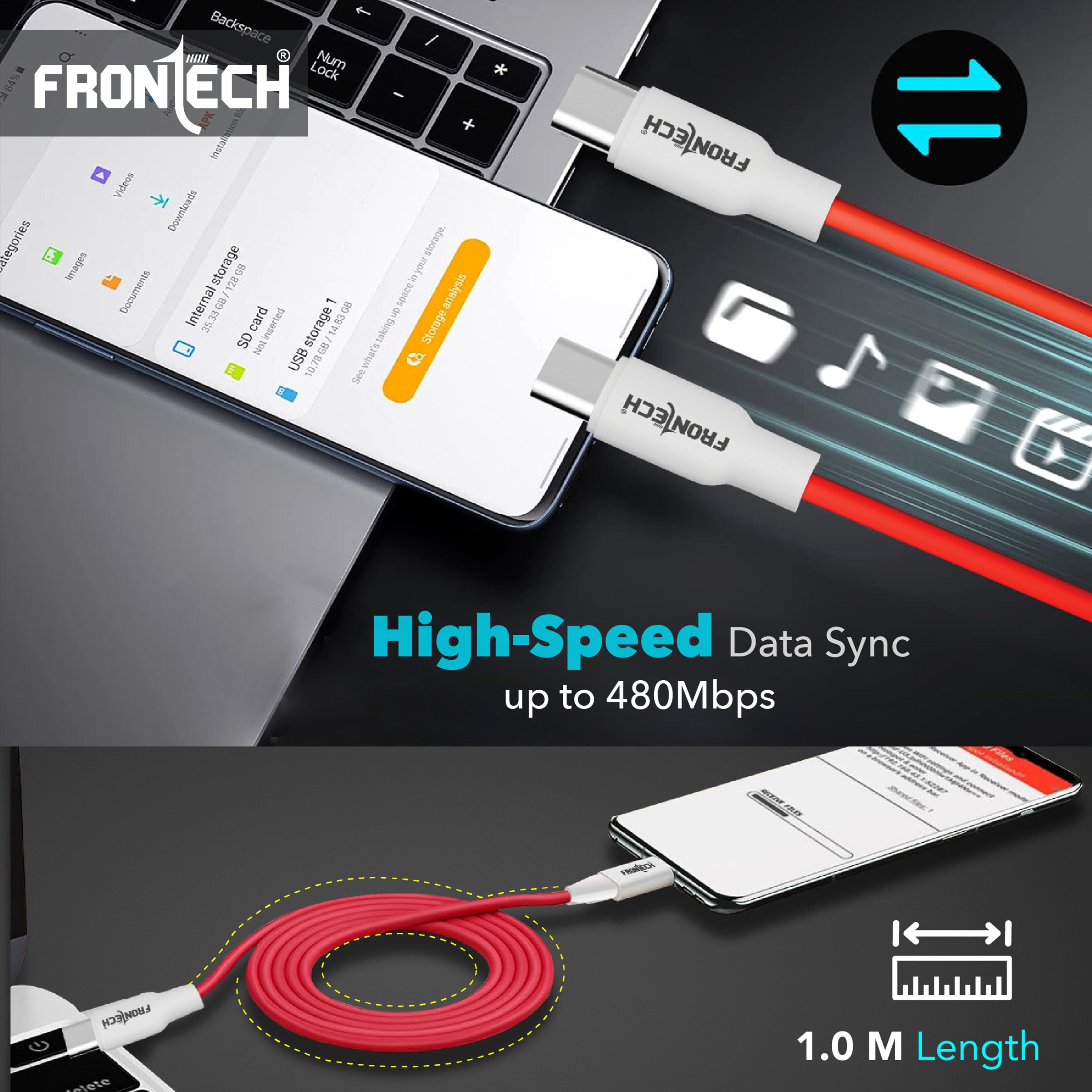 Experience rapid charging and high-speed data transfer with the FRONTECH FT-1045 Type-C to Type-C Data Cable. This durable and flexible 1.0-meter cable is designed to support up to 65W fast charging and offers data sync speeds of up to 480Mbps. Its bend-resistant design ensures longevity compared to ordinary plastic wires. Whether you're at home, the office, in your car, or outdoors, this versatile cable is your ideal companion for all your Type-C compatible devices.