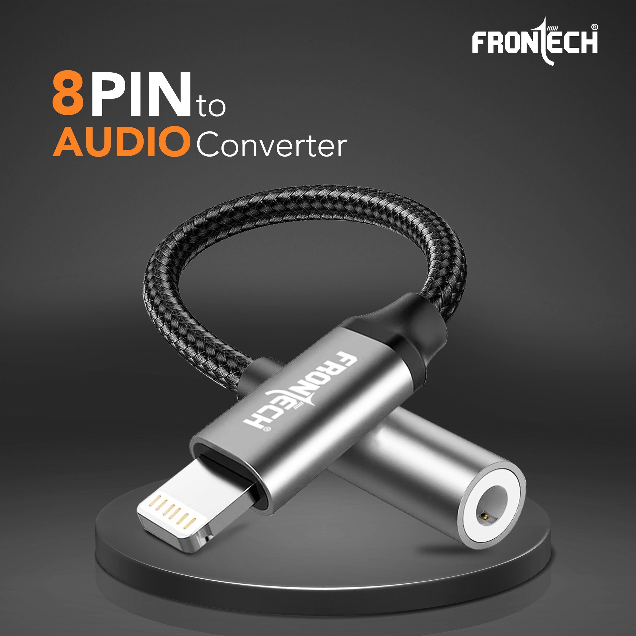 The Frontech 8 Pin to 3.5mm Audio Converter (NC-0060) is a compact, plug-and-play solution for connecting your headphones, mic, or AUX devices. Built with a durable aluminum alloy body and braided nylon cable, it ensures reliable performance for music, calls, and recordings across smartphones, laptops, tablets, and PCs.