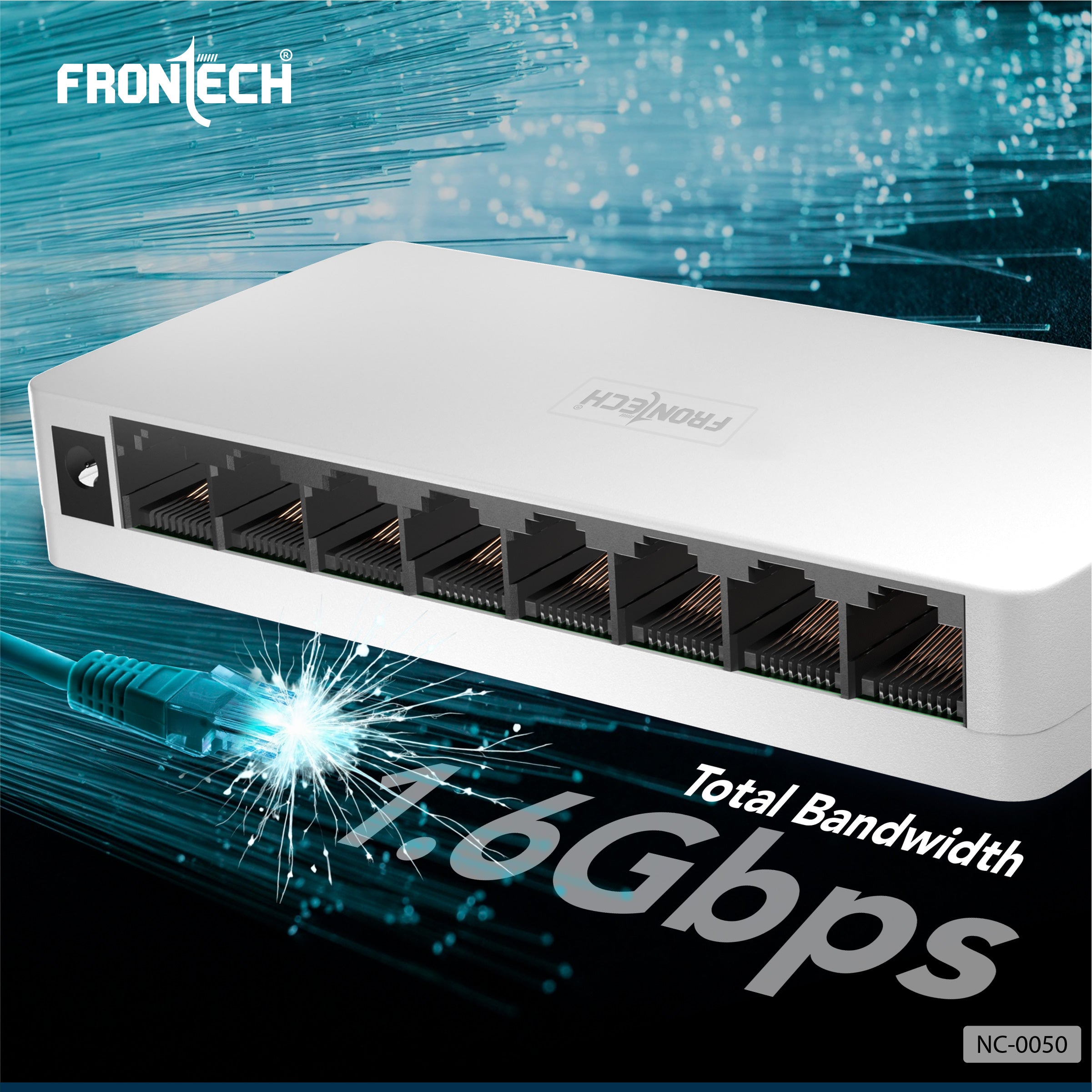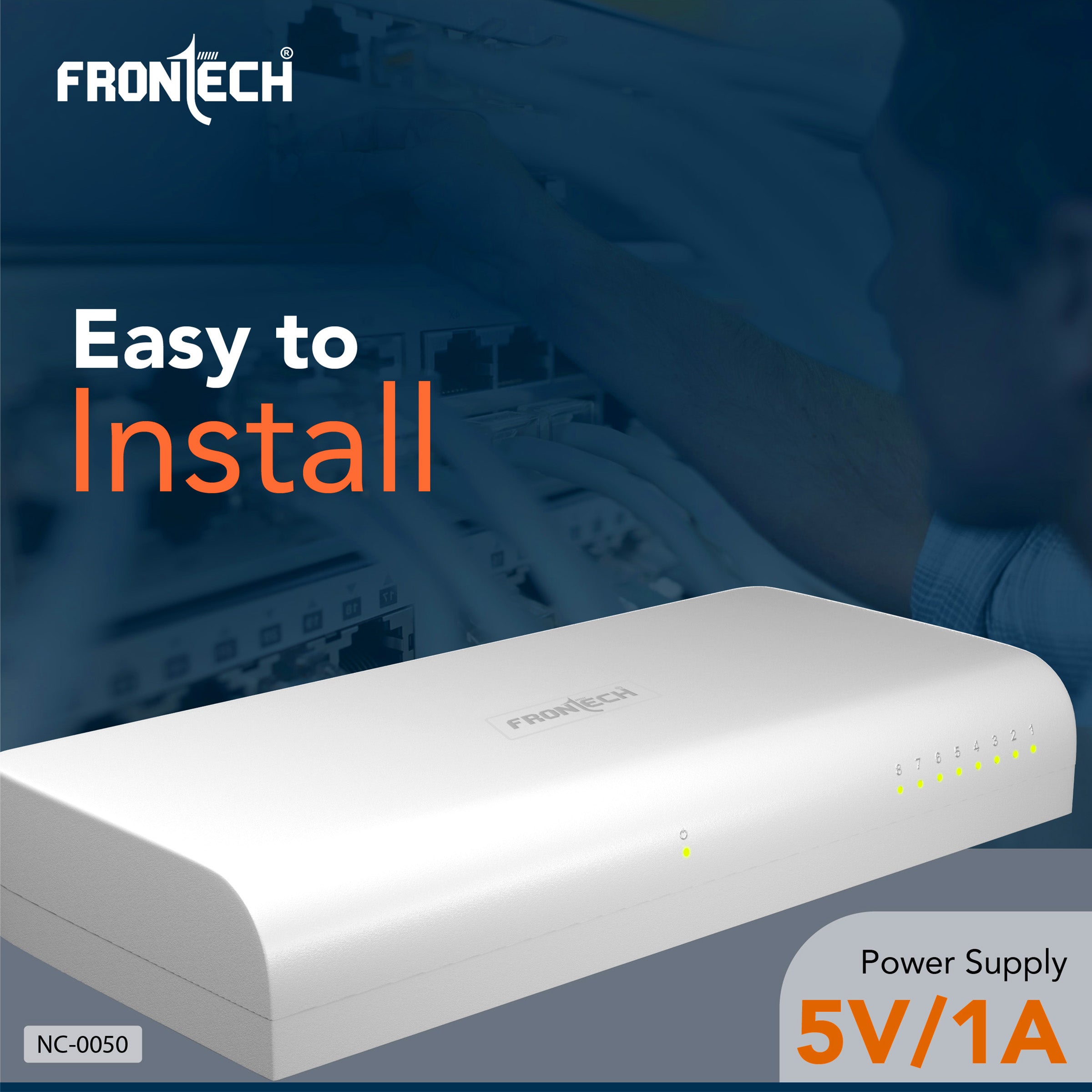 The Frontech NC-0050 8-Port Fast Ethernet Switch is a compact and reliable networking solution designed to expand your wired connections effortlessly. With 8 high-speed 10/100 Mbps ports, it enables smooth connectivity for multiple devices such as PCs, laptops, printers, gaming consoles, smart TVs, and IP cameras.