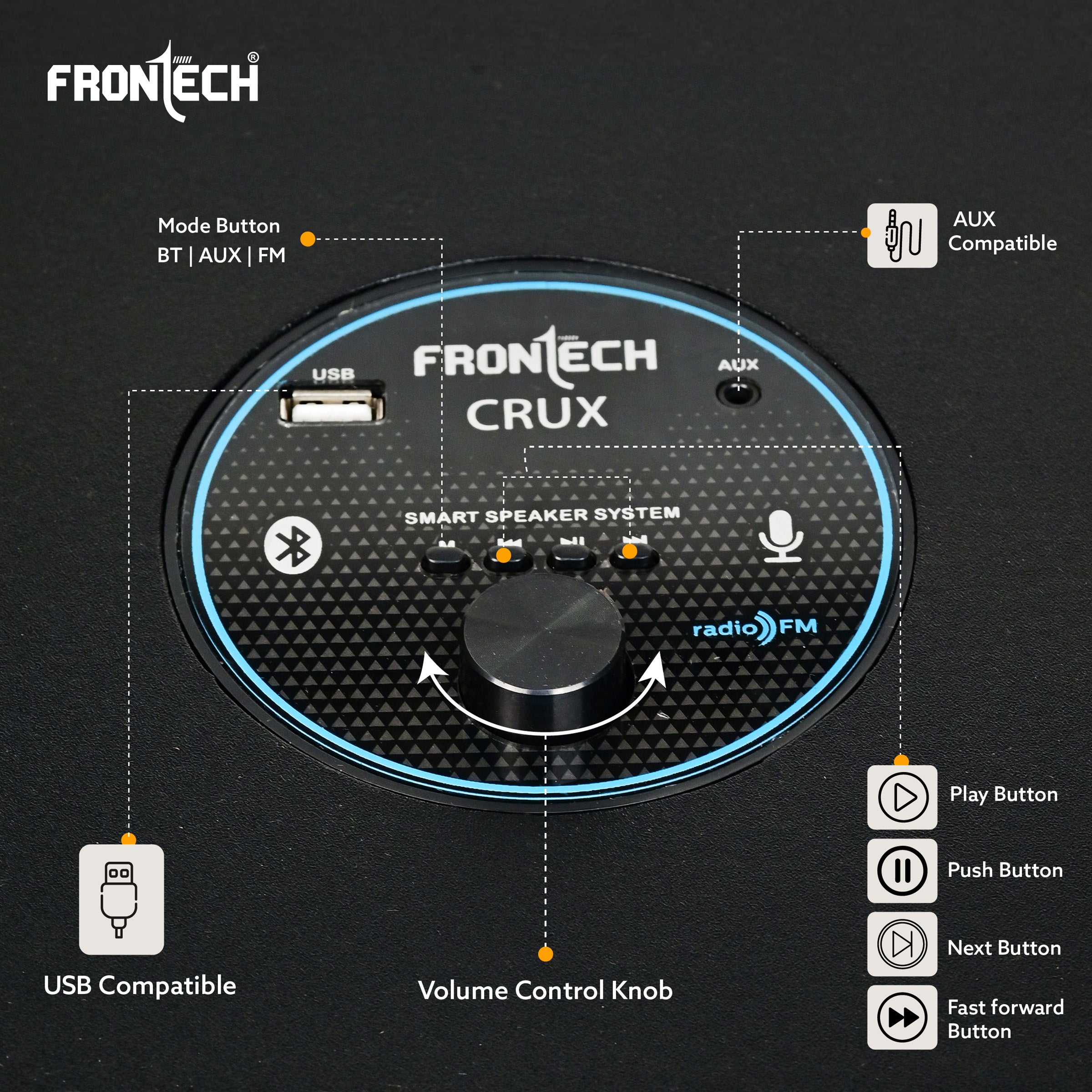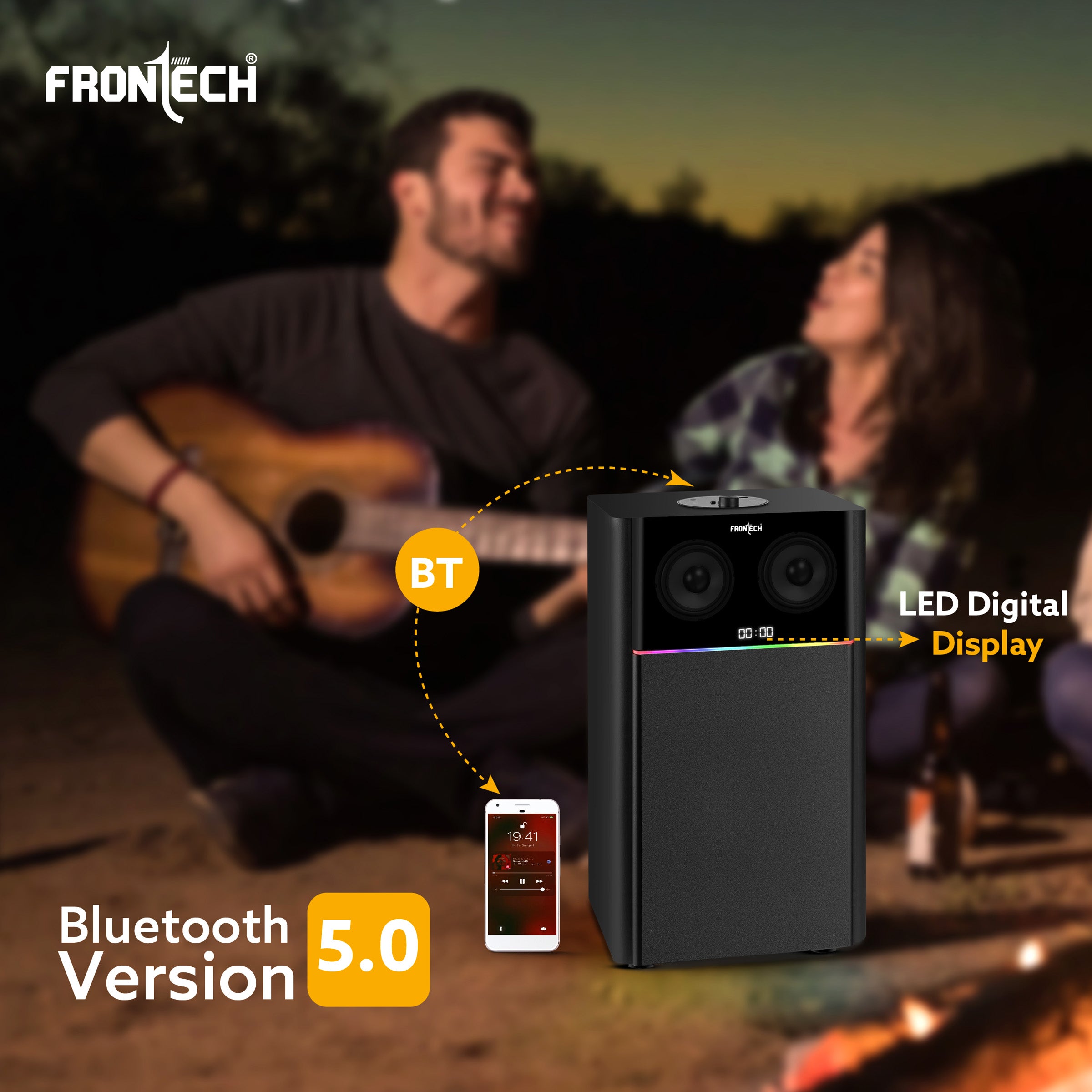 Connectivity Options: AUX, USB, and FM inputs. Bluetooth Version: 5.0 (up to 5 meters range).