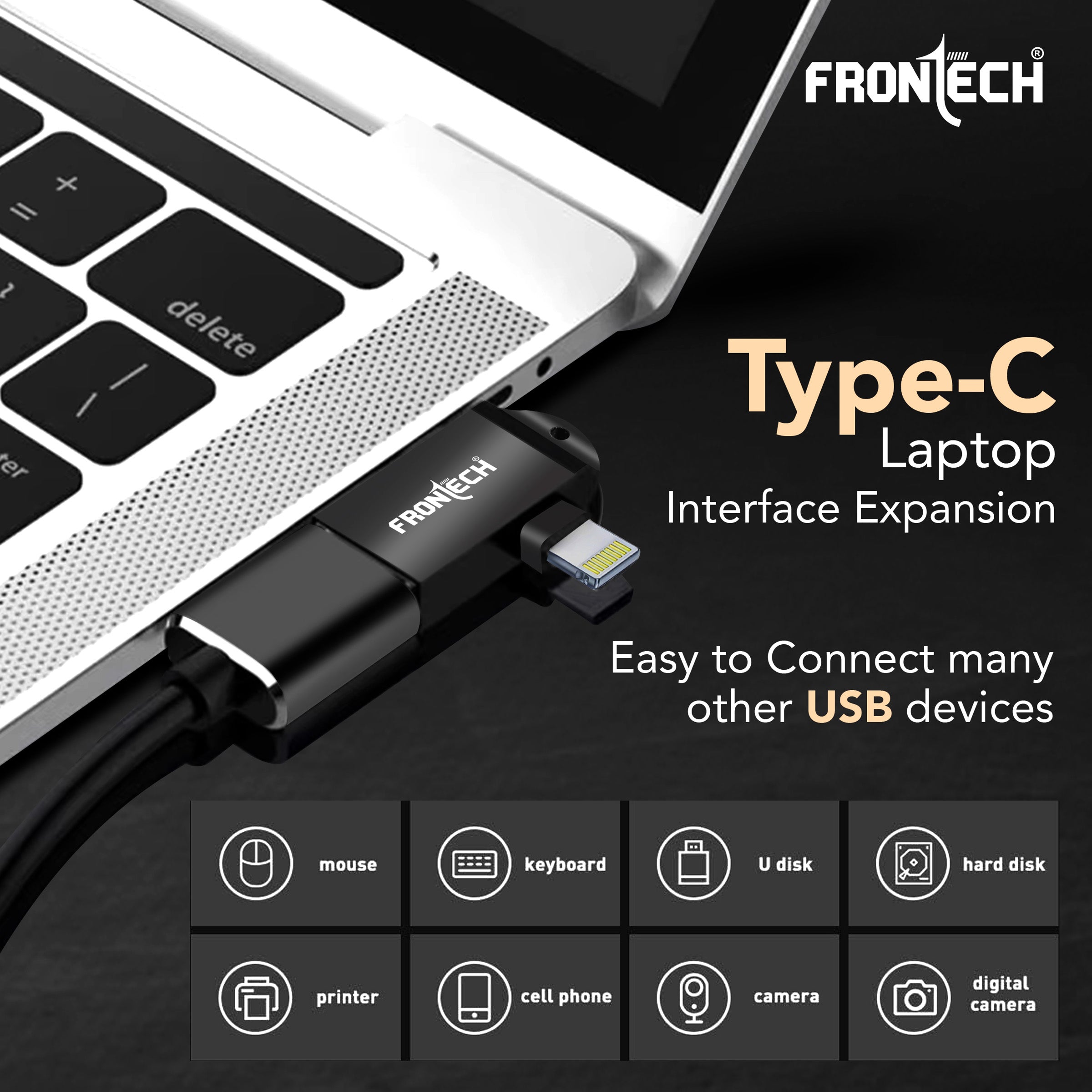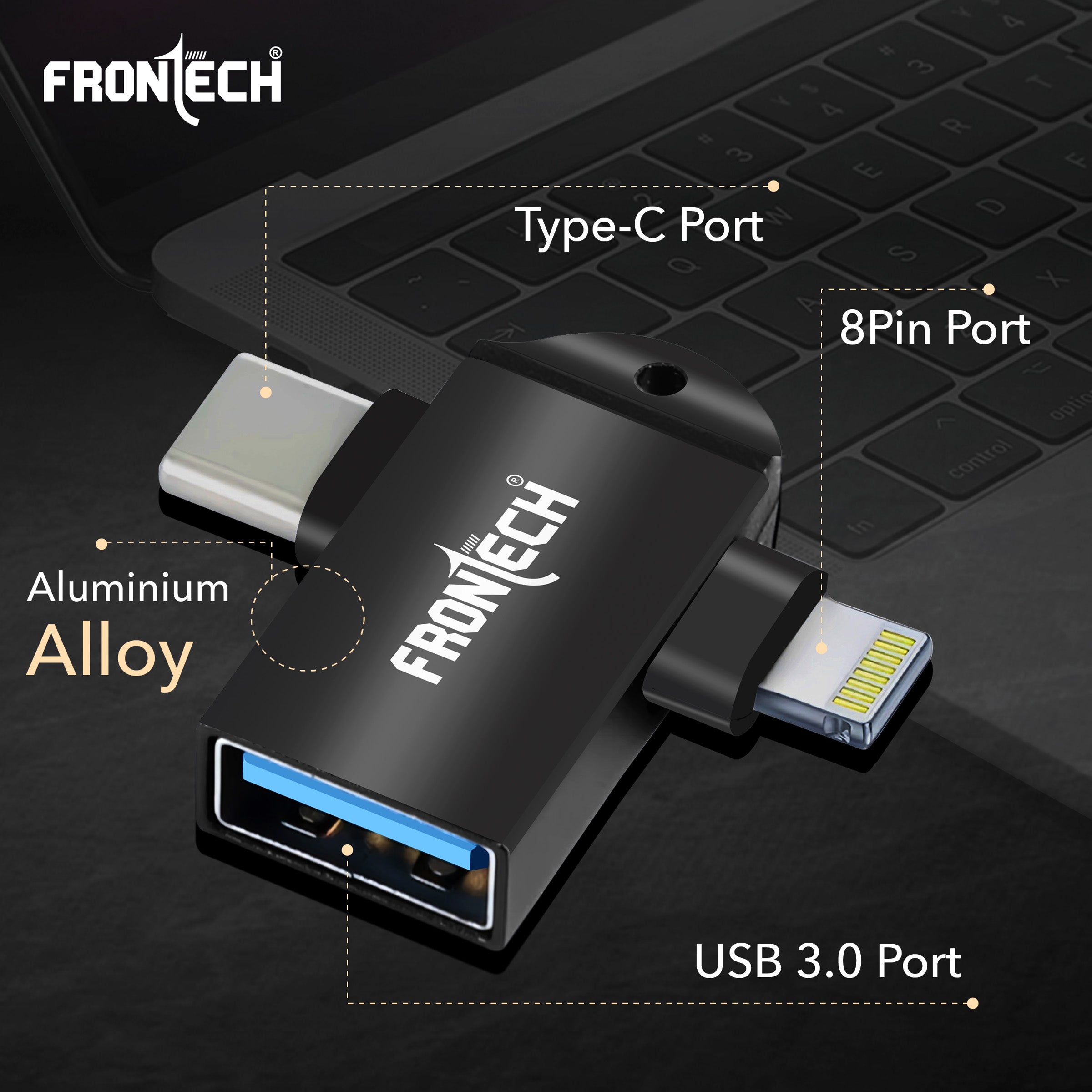 · ✅ Dual Interface Compatibility Seamlessly supports both Type-C and 8-Pin (Lightning) connectors—perfect for Android & iOS devices. · ⚡ Super-Fast Data Transfer Equipped with USB 3.0 port for blazing speeds up to 5 Gbps —transfer large files in seconds. · 🔌 Plug & Play Convenience No software or drivers needed. Instantly connects flash drives, keyboards, mice, gamepads, and more. · 💻 Laptop Interface Expansion Ideal for Type-C laptops —connect USB peripherals effortlessly for work, entertainment, and gaming. · 🎮 Game-Ready Performance Just plug and play your favorite games with gamepads or controllers—zero lag, full immersion. · 📸 Broad USB Device Support Compatible with USB drives, printers, hard disks, cameras, smartphones, and digital cameras. · 🪶 Ultra Compact & Lightweight Sleek aluminum alloy body with compact design—carry it anywhere with ease. · 🔗 Built-in Hanging Loop Comes with a handy loop for easy attachment to keychains, bags, or lanyards. · 💯 Durable & Reliable Rugged build quality ensures long-term durability and stable connection across multiple devices.
