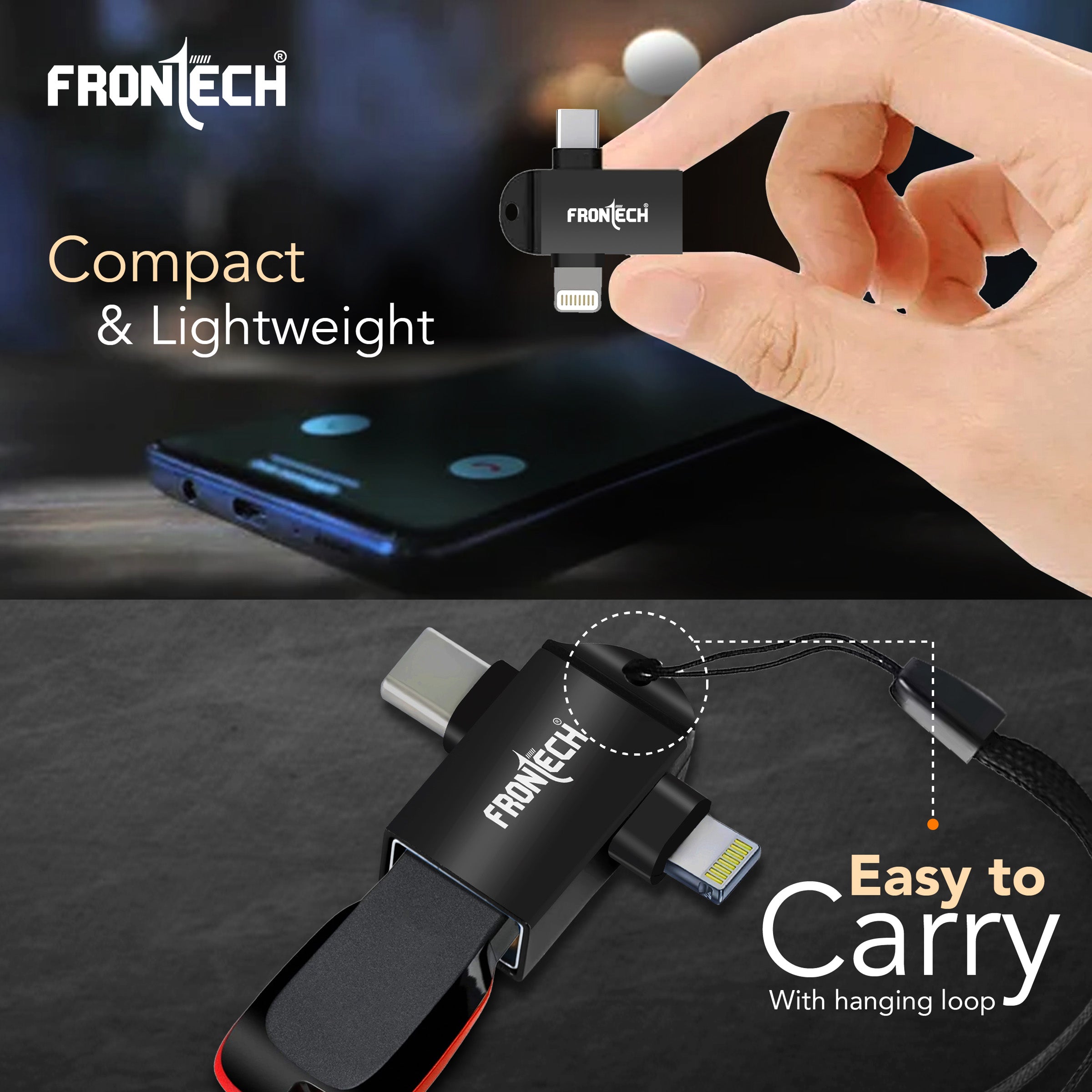 Experience seamless connectivity with the Frontech OTG Converter NC-0046, designed with dual ports for Type-C and 8-Pin (Lightning) devices. Whether you’re transferring files, connecting peripherals, or gaming on the go, this compact adapter delivers USB 3.0 high-speed data transfer up to 5 Gbps. Built with a durable aluminum alloy body, it offers plug & play functionality for smartphones, laptops, tablets, and more. Lightweight, portable, and universally compatible—your perfect everyday tech companion.