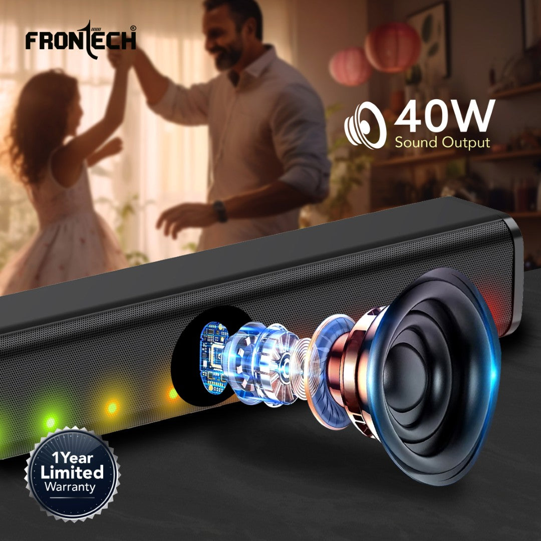Powerful Audio Performance Delivers a robust 40W power output for immersive sound. Wide frequency response range of 60Hz to 16KHz , ensuring rich bass and crisp highs. Seamless Wireless Connectivity Equipped with Bluetooth 5.3 technology for smooth, wireless streaming from compatible devices. Versatile Input Options Supports multiple audio sources: AUX input USB TF card 3.5mm jack Compact and Stylish Design Features a sleek and compact form factor , ideal for enhancing any space with both style and functionality. Reliable Power and Battery Life Built-in 1200mAh battery provides extended playtime. Powered via USB 5V input for easy and convenient charging. Multi-Purpose Usage Perfect for movies, music, gaming, and general entertainment . Warranty and Assurance Backed by a 1-year limited warranty , ensuring lasting performance and peace of mind.