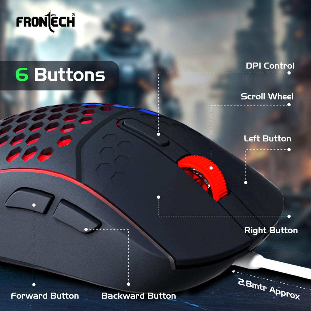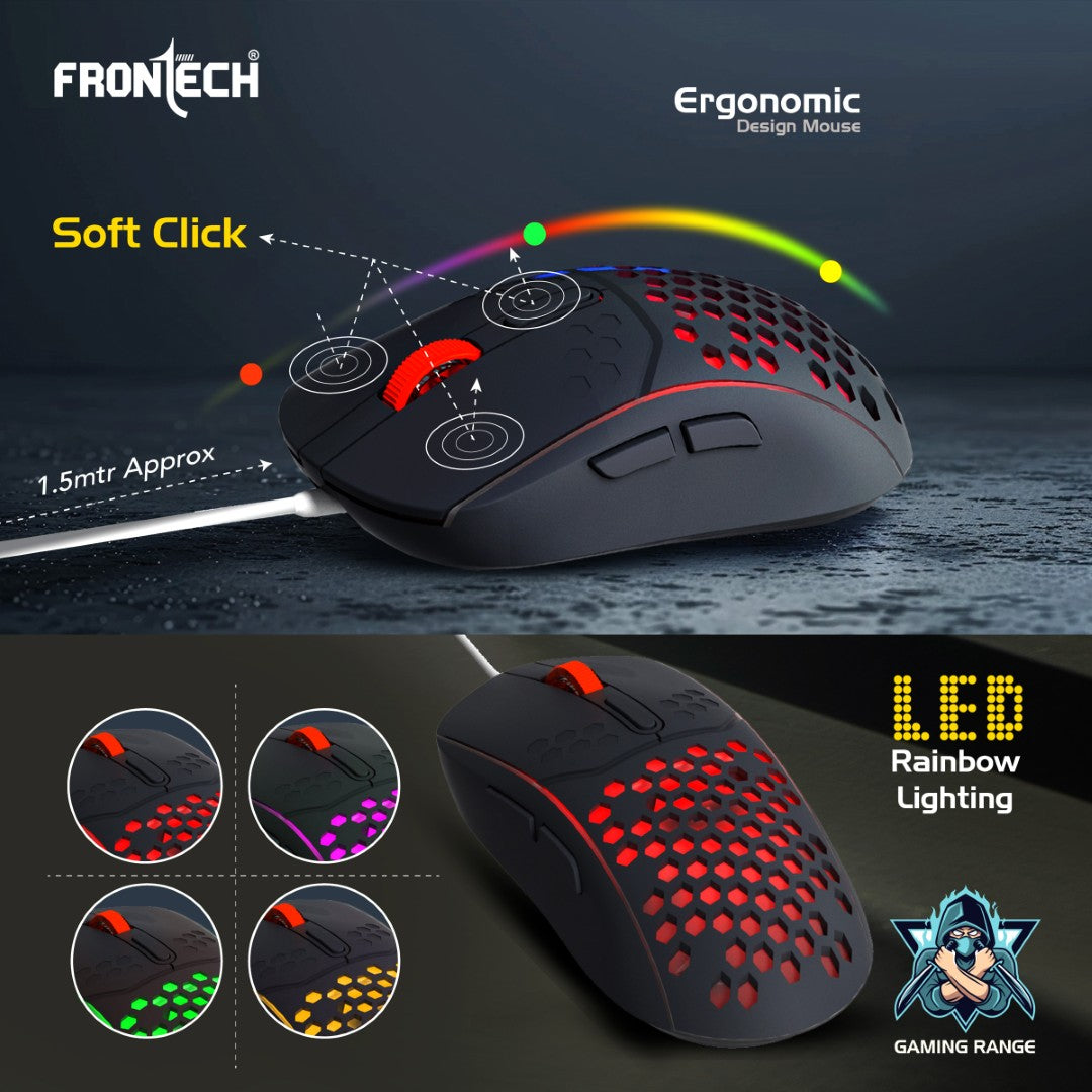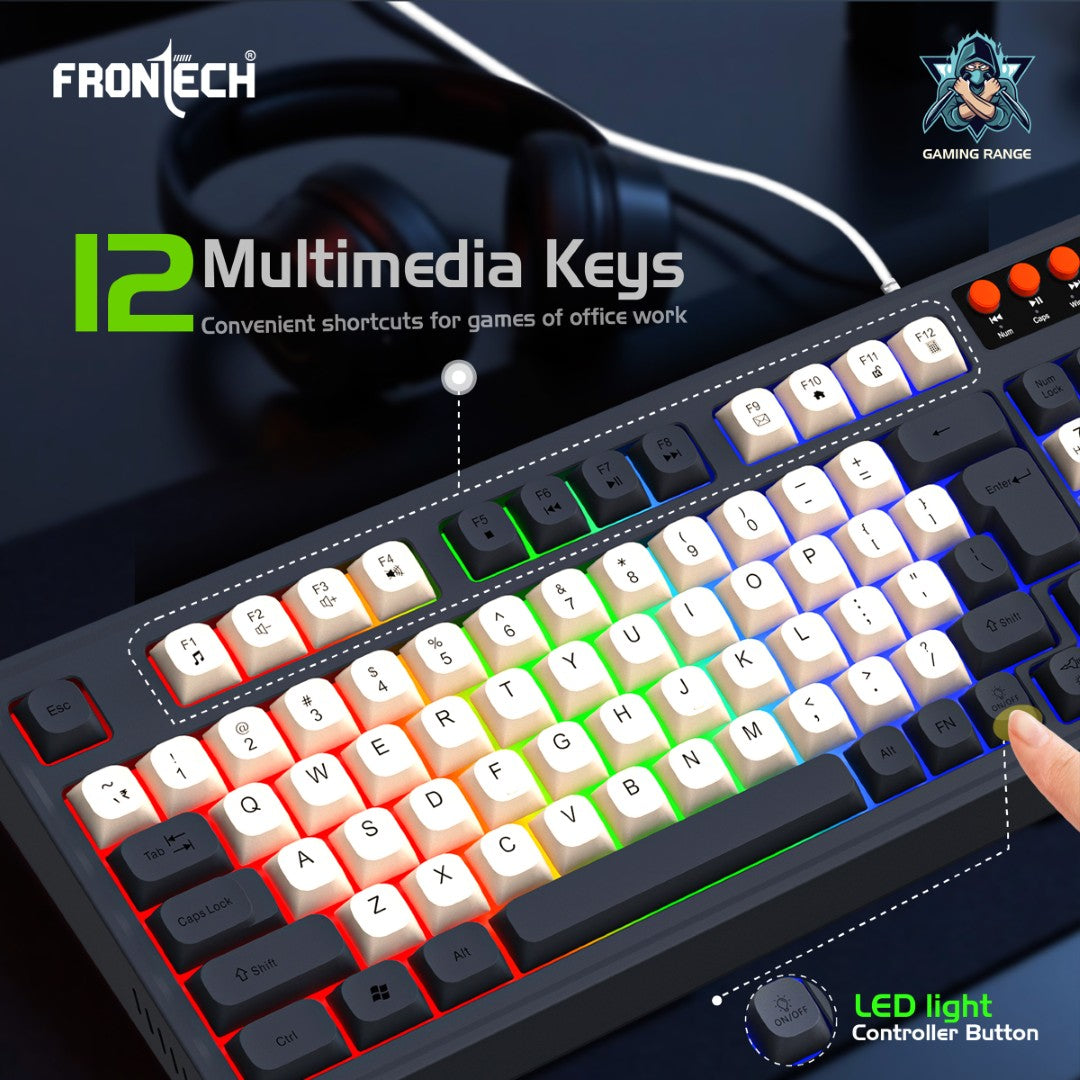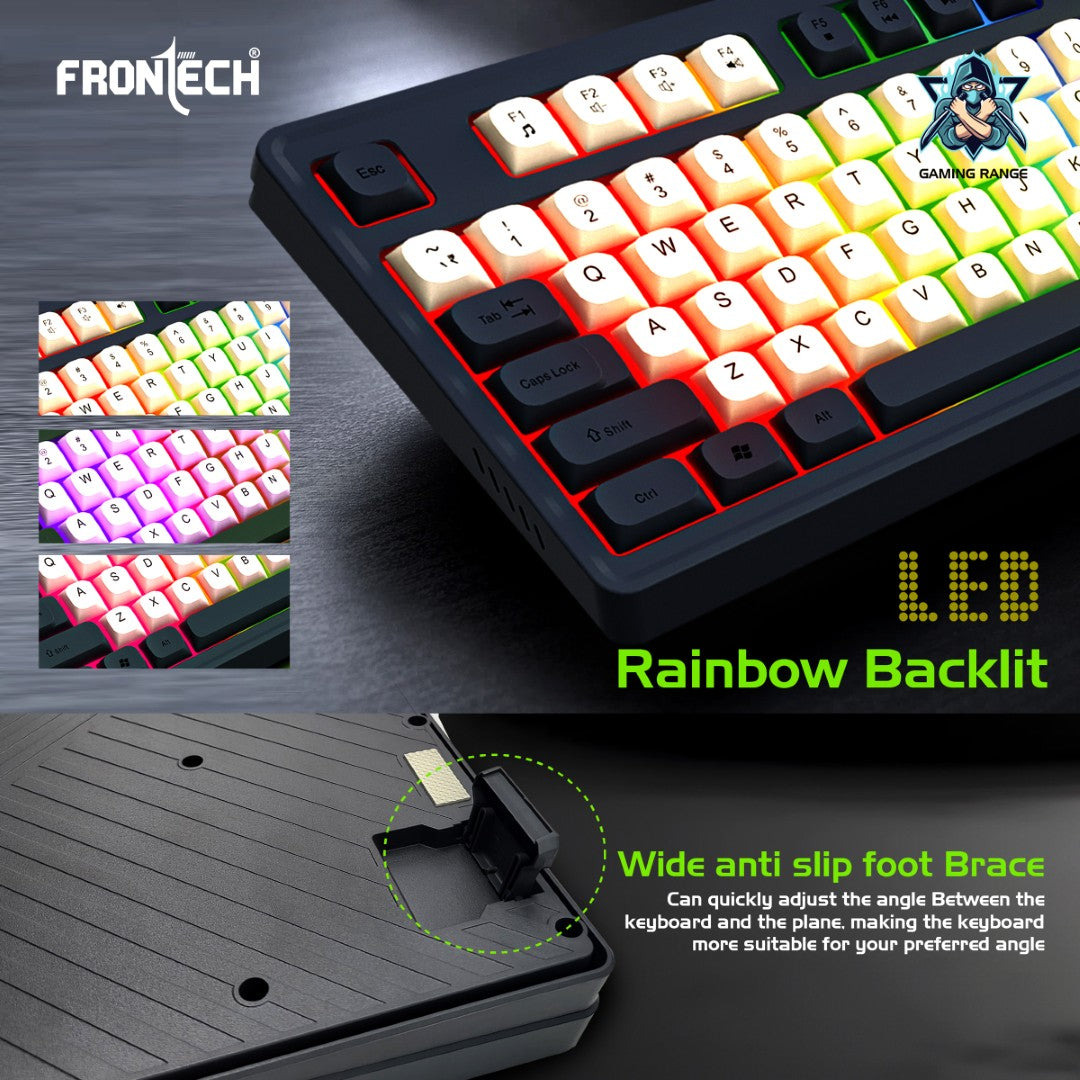 Compact and Functional Gaming Keyboard 94-key design with 4 hot keys for quick access during gaming or multitasking. LED rainbow backlighting enhances the gaming experience and provides visibility in low-light conditions. Durable construction with a 20-million switch lifetime , ensuring long-term reliability. Equipped with a 1.5-meter cable for greater flexibility and ease of movement. Precision-Driven Gaming Mouse Features 6 programmable buttons for versatile gaming control. Adjustable DPI up to 7200 , providing precise tracking for gaming and other tasks. Includes LED rainbow backlighting for an immersive aesthetic. Ergonomically designed for a comfortable grip during extended sessions. 1.5-meter cable ensures hassle-free, stable connectivity. Durable and Stylish Design Finished in an attractive Grey + White + Orange color scheme , adding a modern, dynamic look to your setup. Lightweight yet robust build, designed to endure intense gaming sessions. Seamless Plug & Play Compatibility USB connectivity supports Plug & Play functionality , requiring no additional software or drivers. Compatible with all modern Windows systems , ensuring easy integration into gaming or work environments.