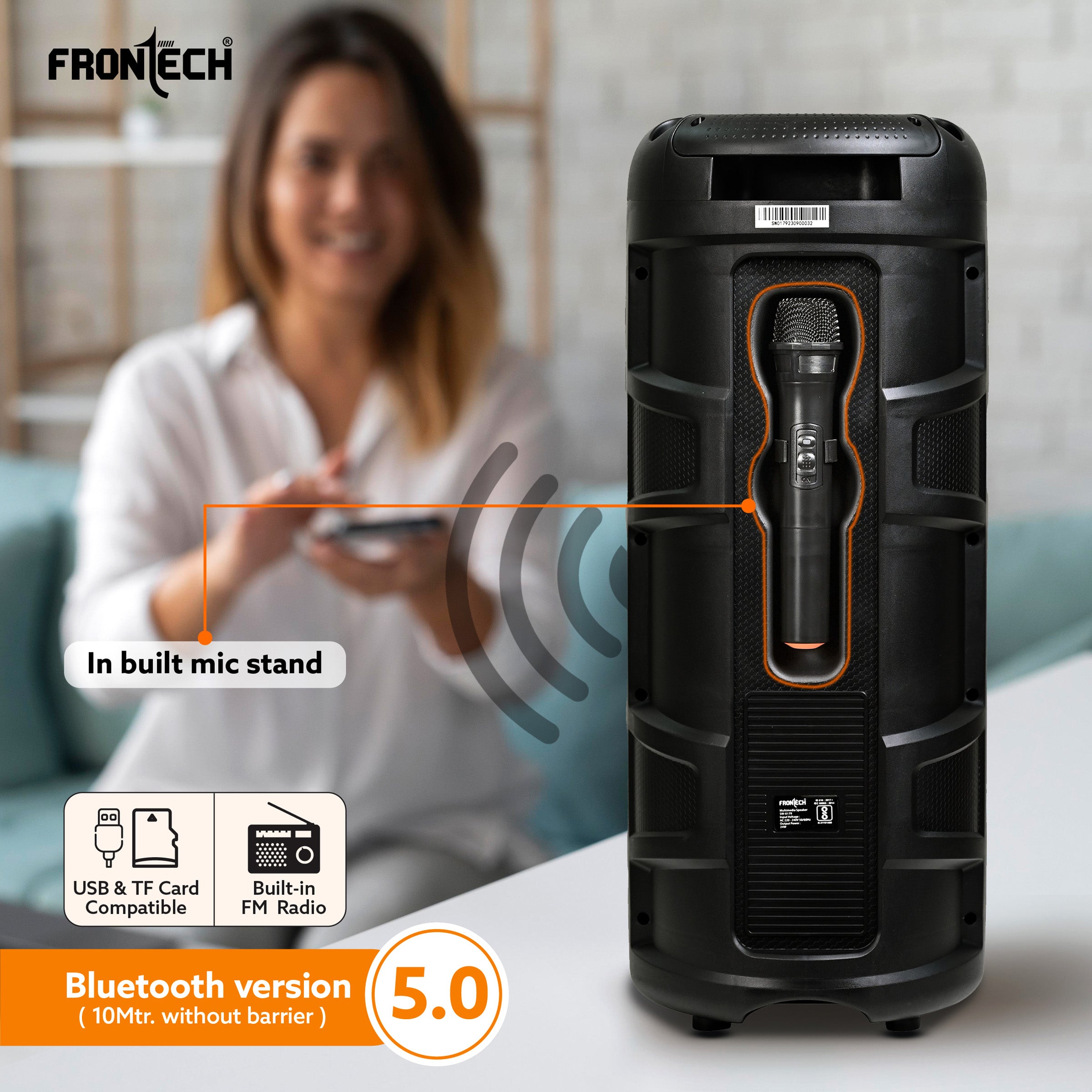 Enjoy multiple input options, including USB, TF card, Bluetooth (BT), FM radio, MIC In, and AUX In.