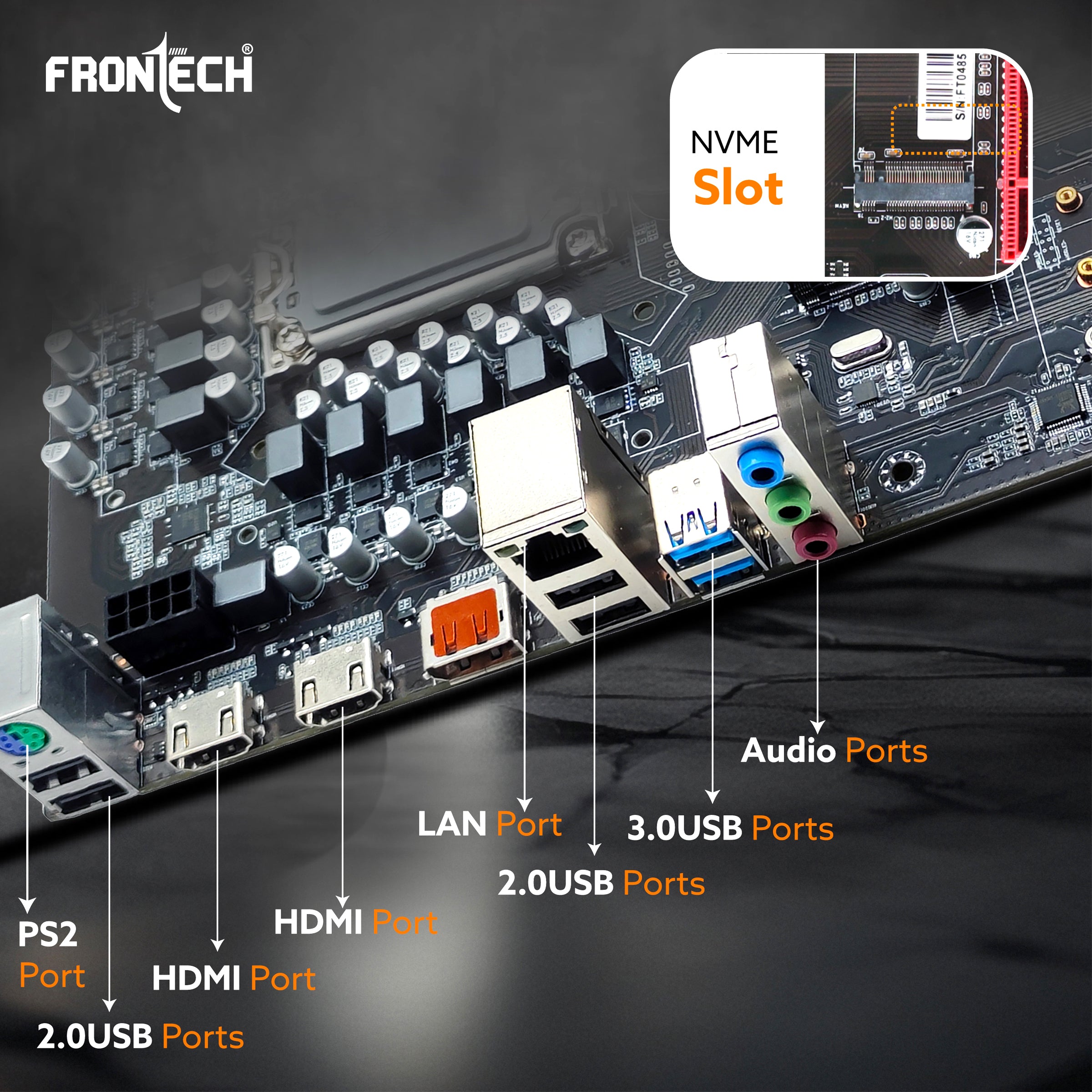 USB headers and fan connectors.