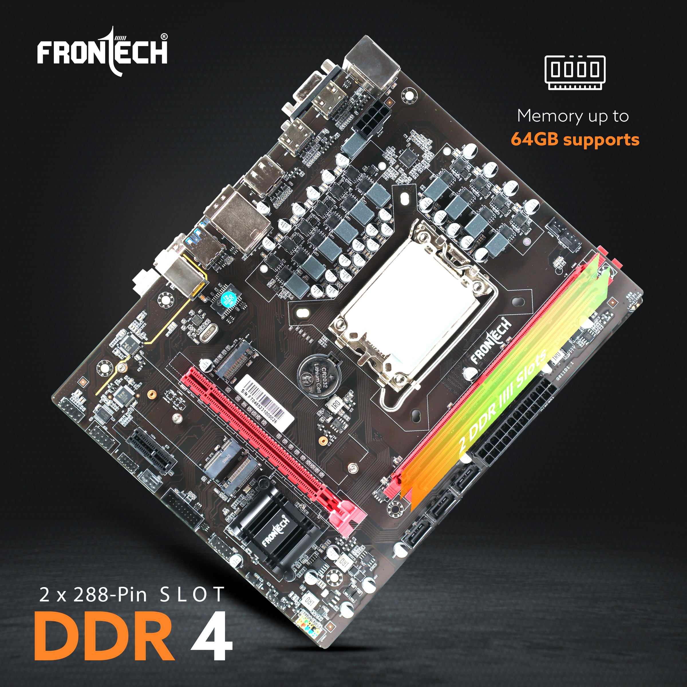 Memory Support: Dual DDR4 SDRAM slots accommodating up to 64GB of memory. Memory speeds up to 3200MHz.
