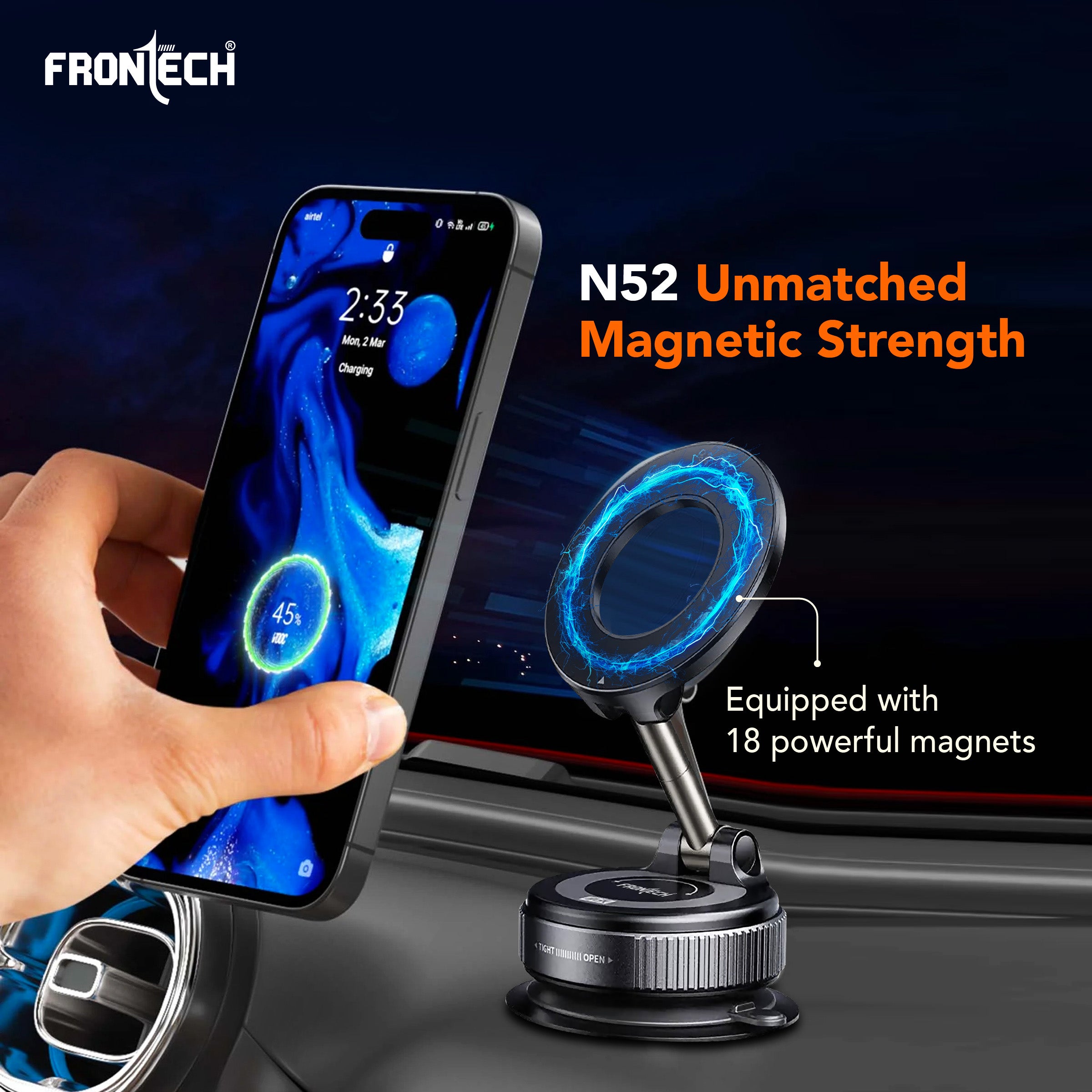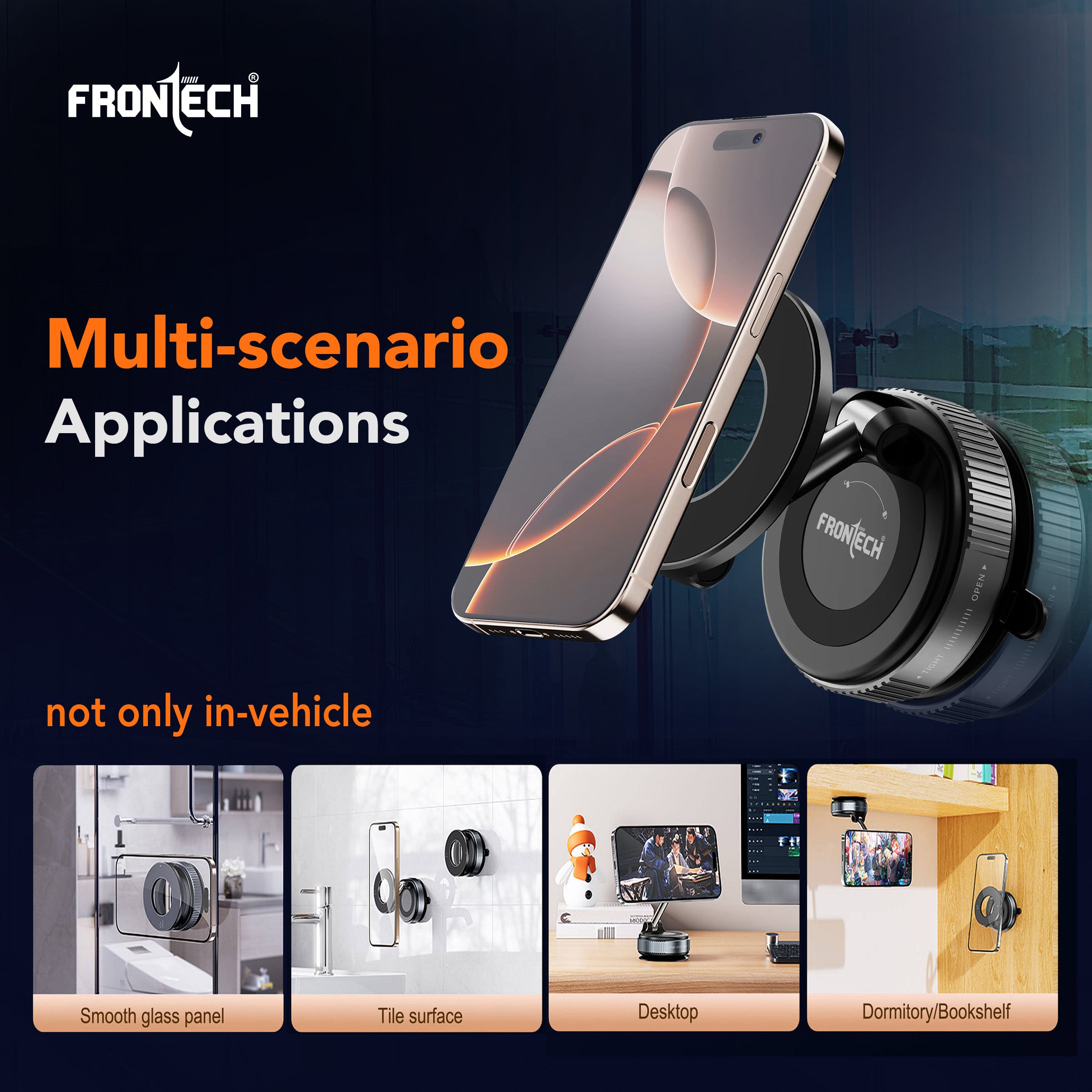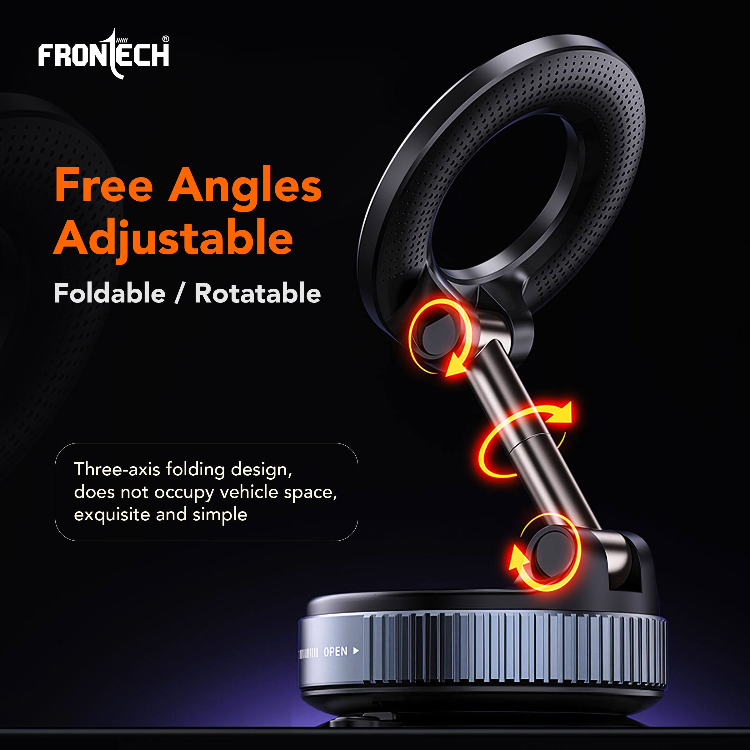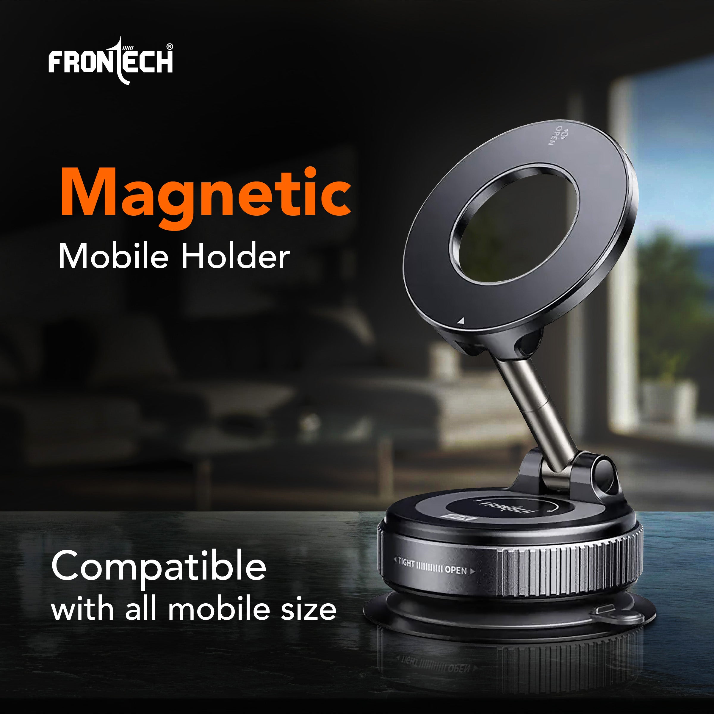 Enjoy hands-free convenience anywhere with the FRONTECH Magnetic Mobile Holder (CCH-0018). Featuring 360° rotation, multi-angle adjustability, and strong vacuum suction, it securely holds all smartphones. Compact, durable, and portable, it’s perfect for car, desk, or bedside use.