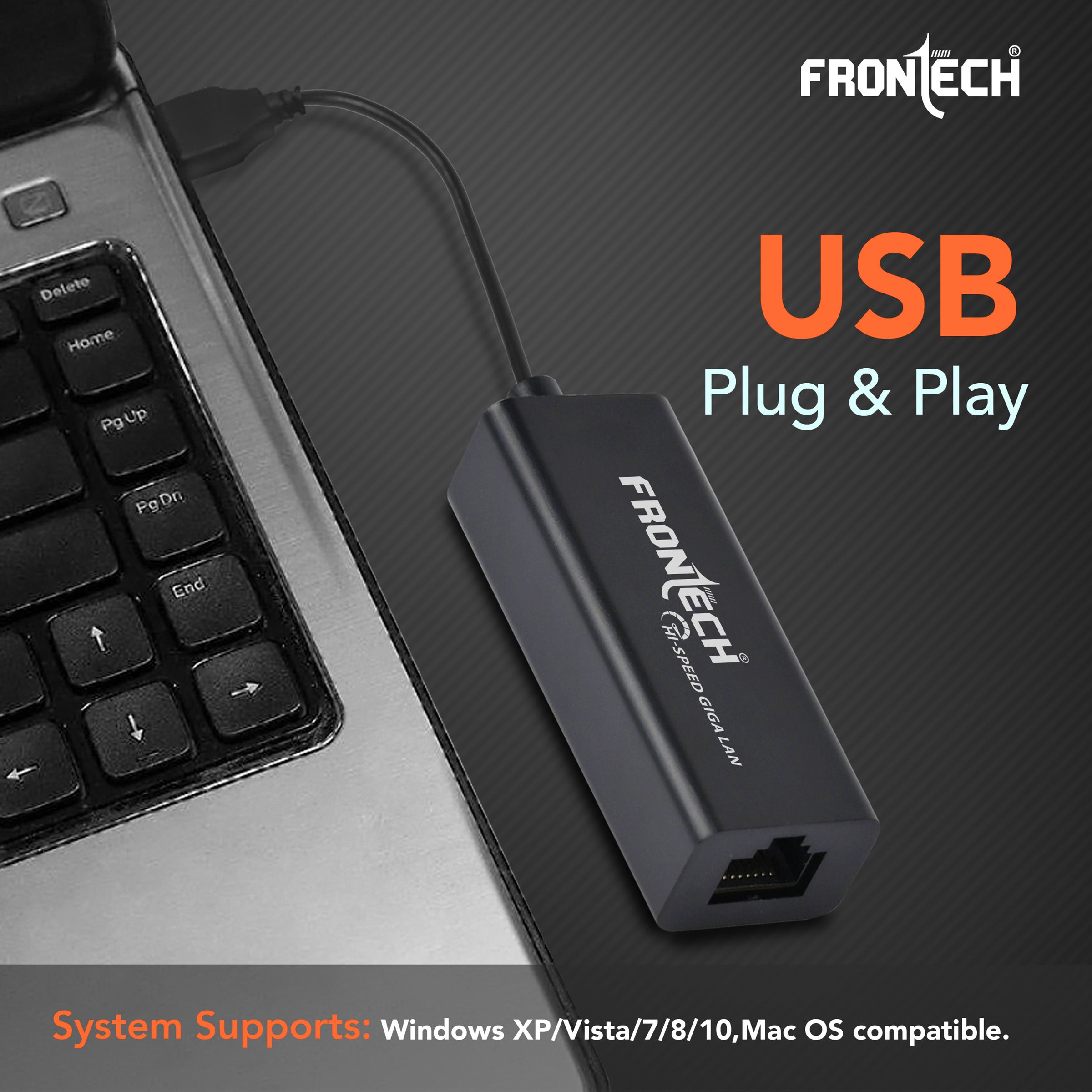 Upgrade your connectivity with the Frontech USB 3.0 to Gigabit Ethernet Adapter, offering up to 1000Mbps high-speed internet for smooth browsing, streaming, gaming, and large file transfers. Built with a durable ABS body and compact, lightweight design, this USB to RJ45 wired dongle is perfect for laptops and PCs without an Ethernet port, delivering more stable connections than Wi-Fi. With easy Plug & Play installation and wide compatibility with Windows XP/Vista/7/8/10/11, Mac OS, and Linux, it ensures hassle-free use at home, office, or on the go—making it the ideal portable solution for professionals, students, and gamers who need fast and reliable networking.