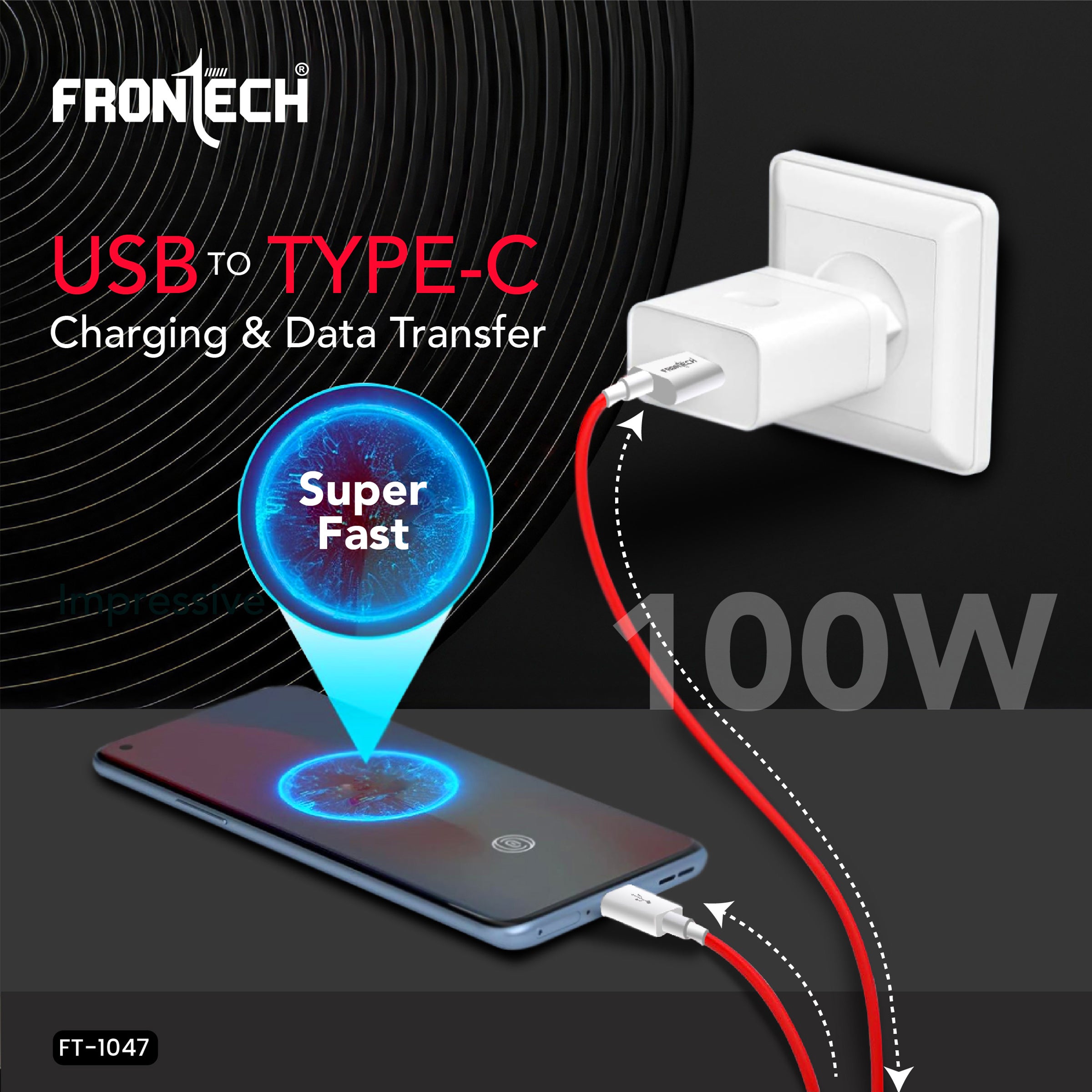 The Frontech FT-1047 is a high-performance USB Type-C cable designed for ultra-fast charging (up to 100W) and high-speed data transfer. Built with durable PC plastic wiring and bend-resistant technology, this 1-meter cable ensures longevity and flexibility for everyday use. Compatible with all Type-C interface devices, it is ideal for home, office, car, and outdoor environments.
