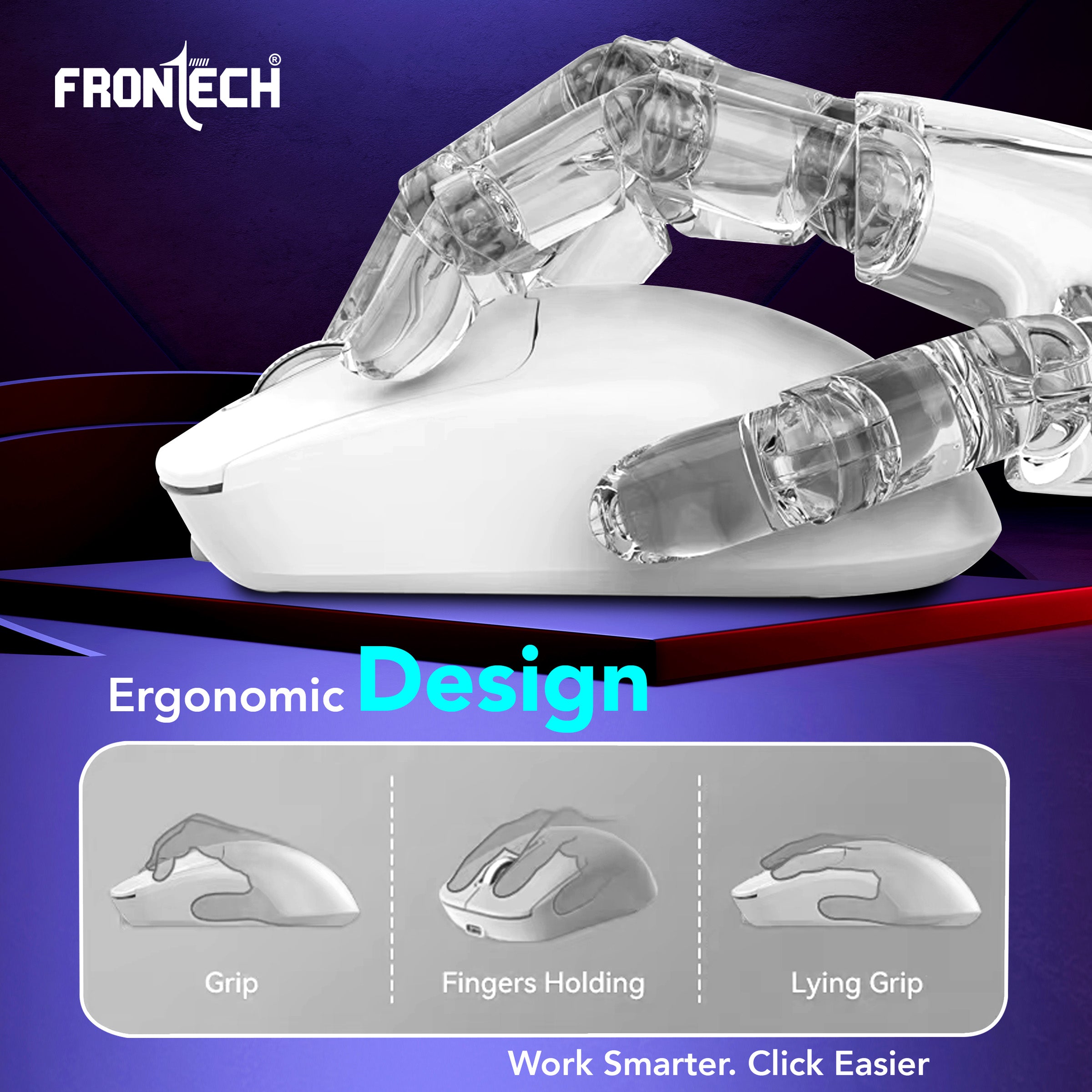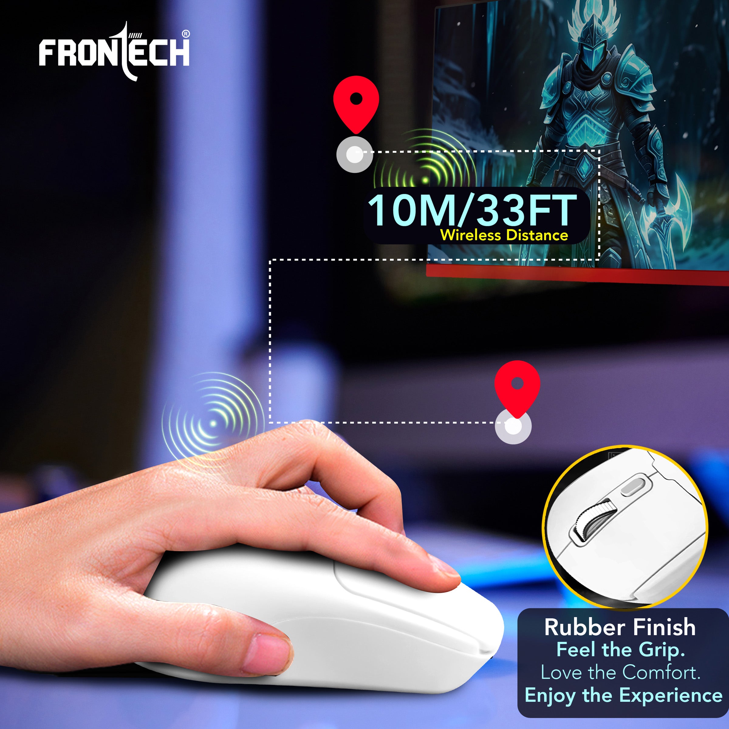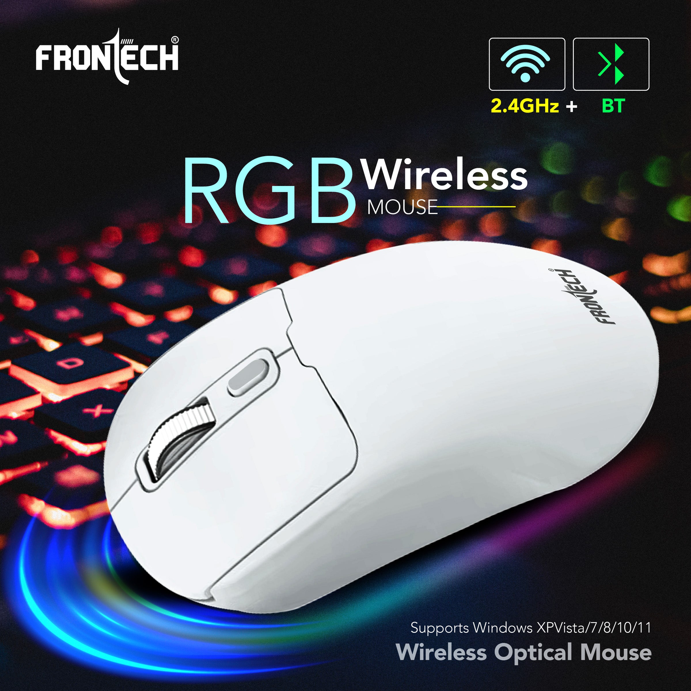Experience seamless control and versatile connectivity with the Frontech MS-0058W Wireless Optical Mouse, designed for productivity, performance, and style. Equipped with dual connectivity modes—2.4GHz USB wireless and Bluetooth—it allows effortless switching between two devices, making it ideal for multitasking across laptops, desktops, or tablets. The elegant white finish combined with a soft rubber texture not only adds a premium look but also ensures a comfortable, slip-free grip for extended use. Perfect for both work and casual use, this mouse delivers convenience and functionality in a sleek package..