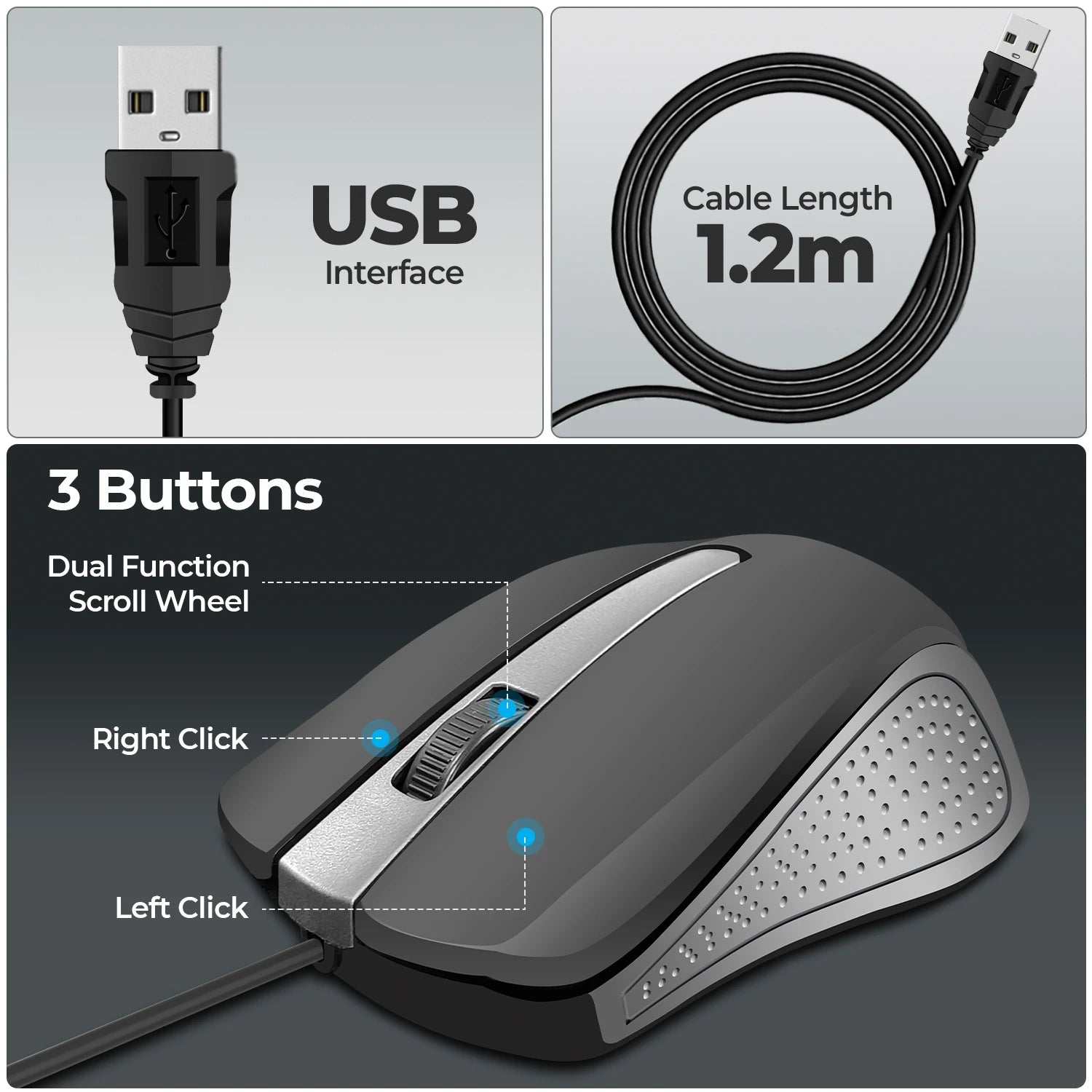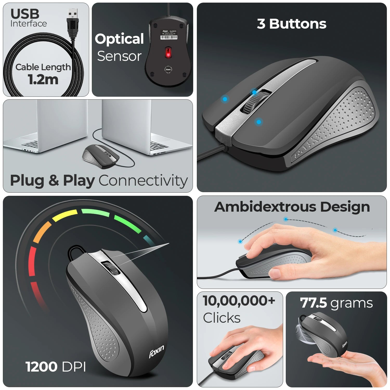 Gaming mouse wired precision—up to 1200 DPI optical tracking turns every swipe into a head-shot winner; doubles as a wired gaming mouse for marathon mouse gaming sessions. Instant USB Plug & Play wired mouse freedom—your go-to mouse for pc, effortless wired mouse for laptop, and always-ready mouse for laptop wired travel buddy. Feather-light 68 g build forms a true ergonomic mouse; perfect as a fatigue-free laptop mouse and whisper-quiet silent mouse in shared workspaces. Switches rated 1 000 000+ clicks keep this mouse wired reliable for years—ideal wired mouse for pc computer power users and students alike. Modern Grey styling rivals any logitech mouse or even a transparent mouse for laptop aesthetic while the optical sensor tracks flawlessly on almost any surface.