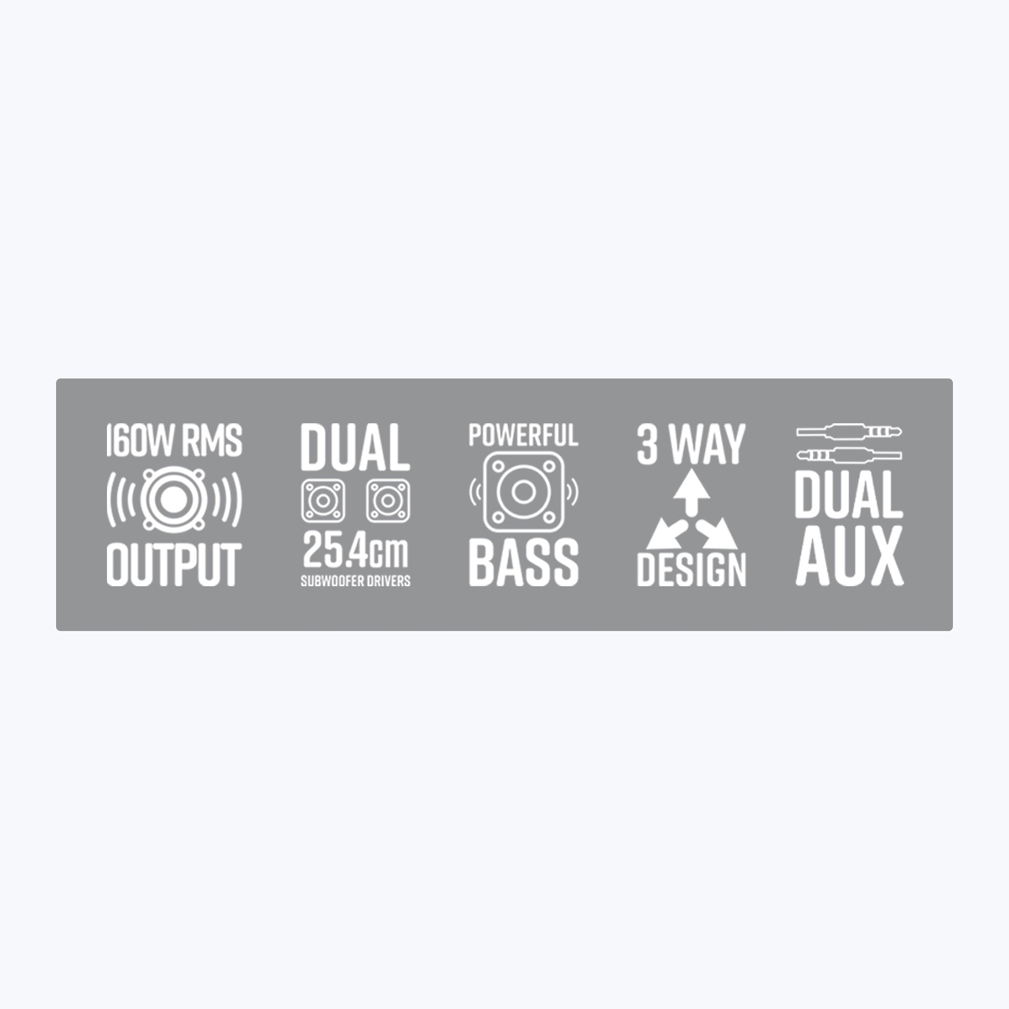 | Output Power (RMS) | 160W (80W + 80W) | |