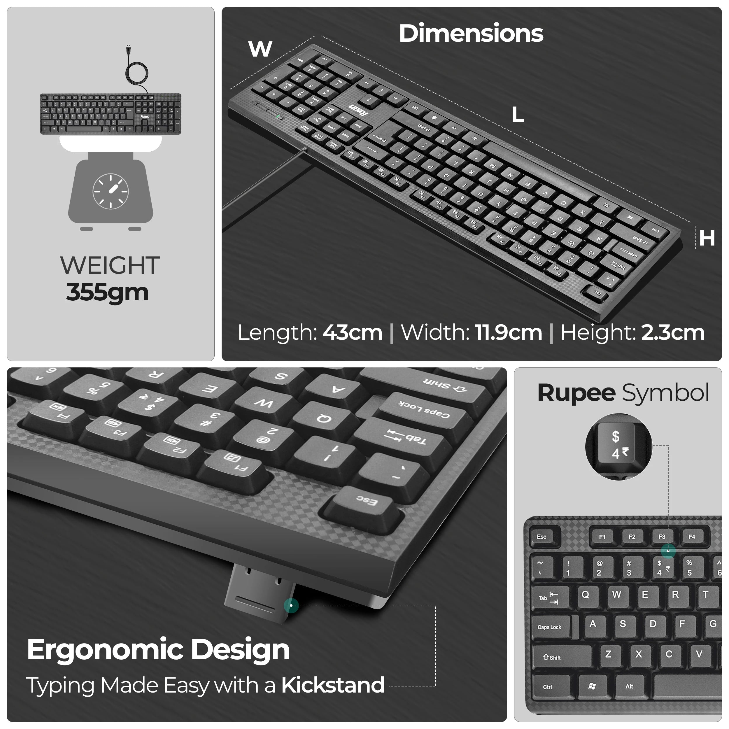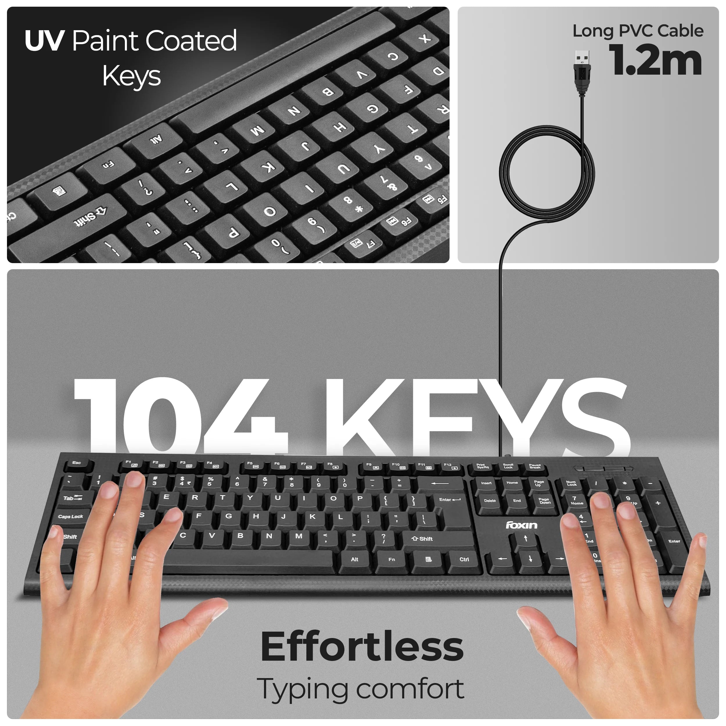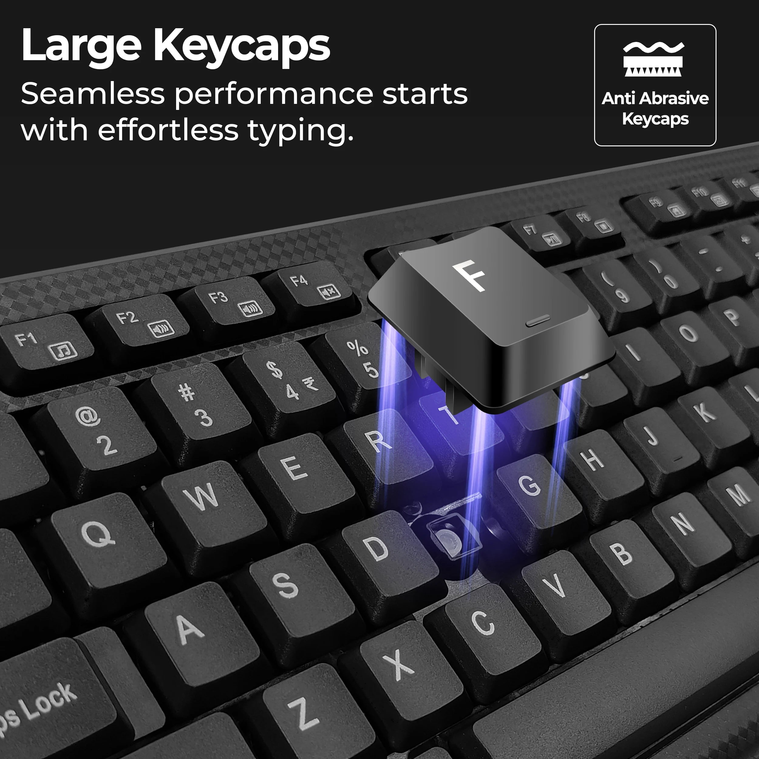 Product Features 104 Keys, Anti-Abrasive Keycaps, Durable & Spill Resistant, Rupee Key, Smooth Keystrokes