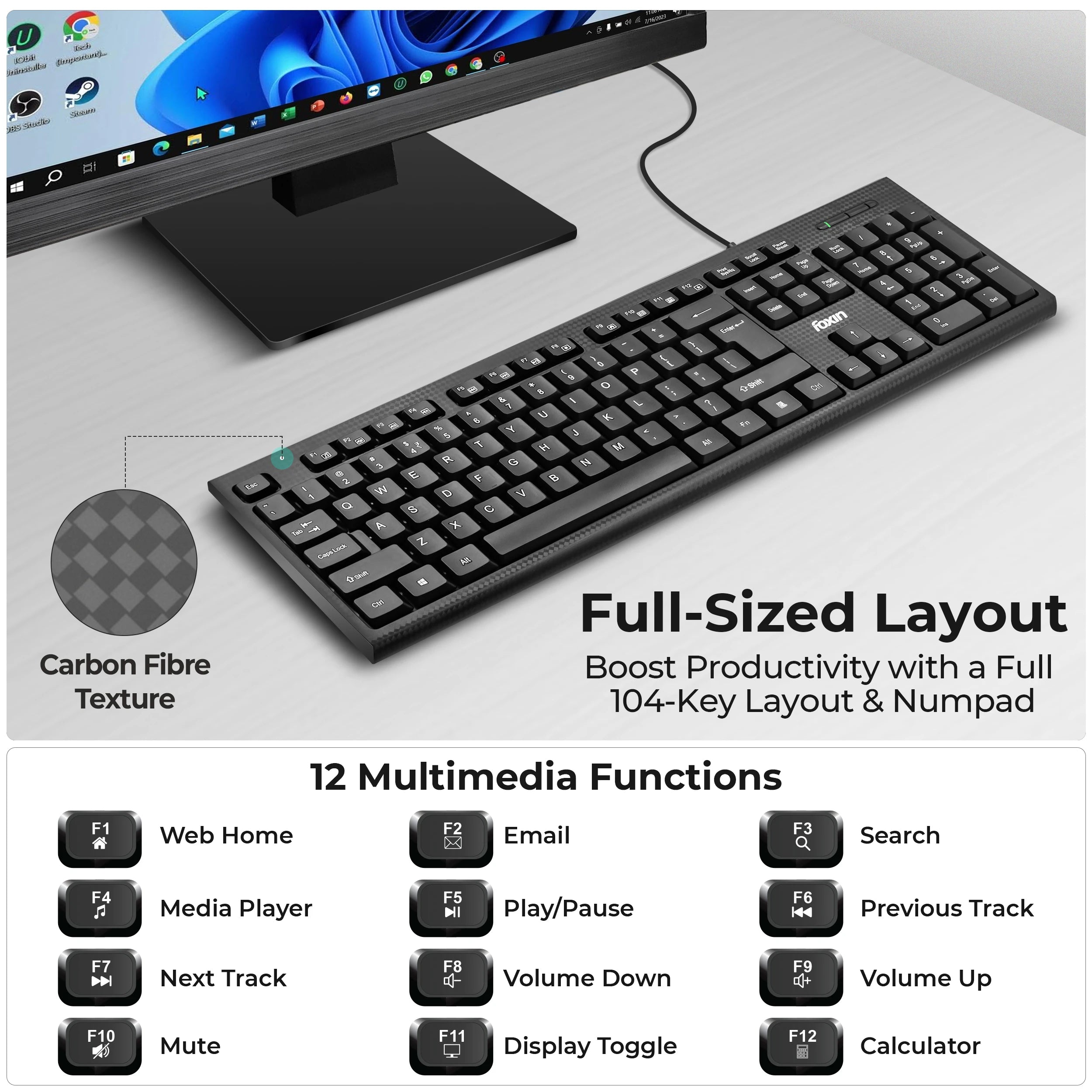 Experience seamless typing with the keyboard designed for comfort and durability-perfect as a keyboard for pc or keyboard for laptop with 104 keys and smooth keystrokes. Reliable wired keyboard connection via USB and a 1.3 M cable length ensures flexibility whether using it as a wired keyboard for laptop or desktop setup. Built-in multimedia controls let you manage audio and video effortlessly, making this keyboard a versatile tool for work or play. Tough, anti-abrasive keycaps with UV paint coating keep this keyboard looking fresh and spill resistant for long-lasting use. Includes a handy Rupee key for easy currency typing, and works great as a keyboard for mobile or any USB-compatible device.