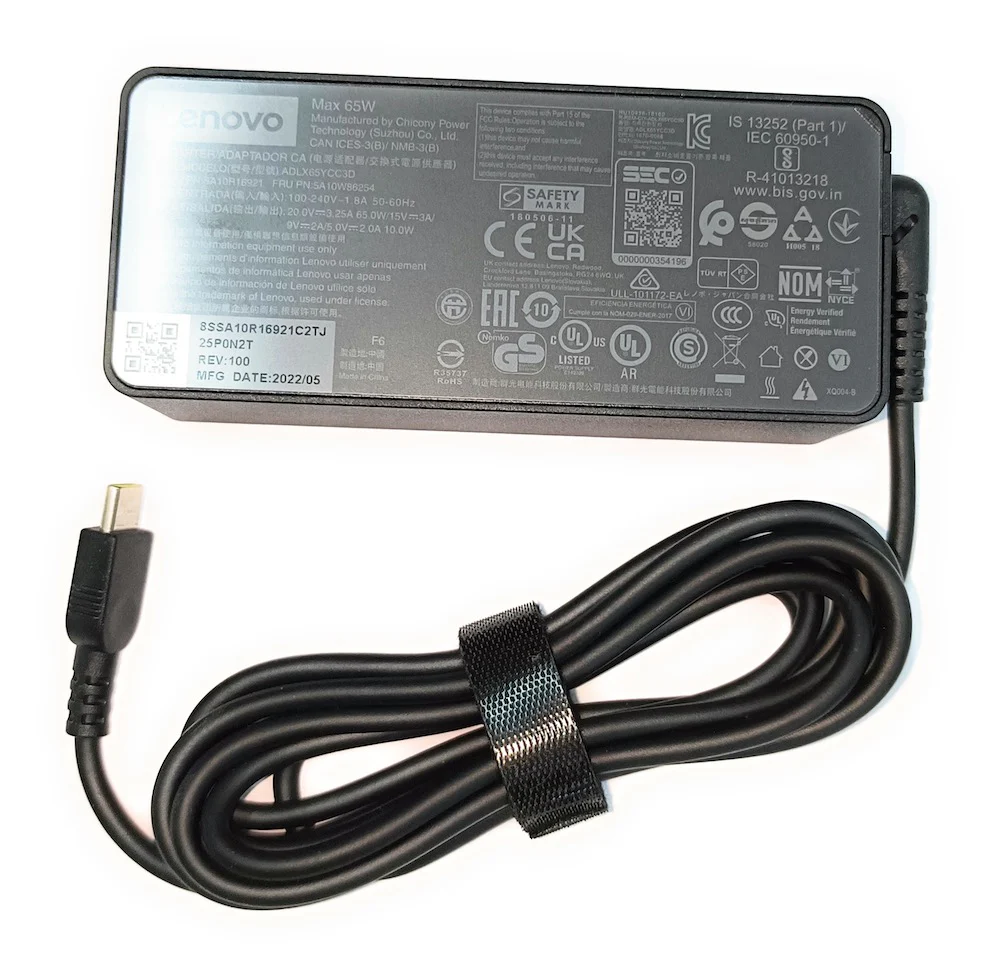 Lenovo, Connector Type: USB Type-C, Power Capacity : 65W AC Input: 100-240V ~ 1.5A 50-60Hz , DC Output: 20V 3.25A