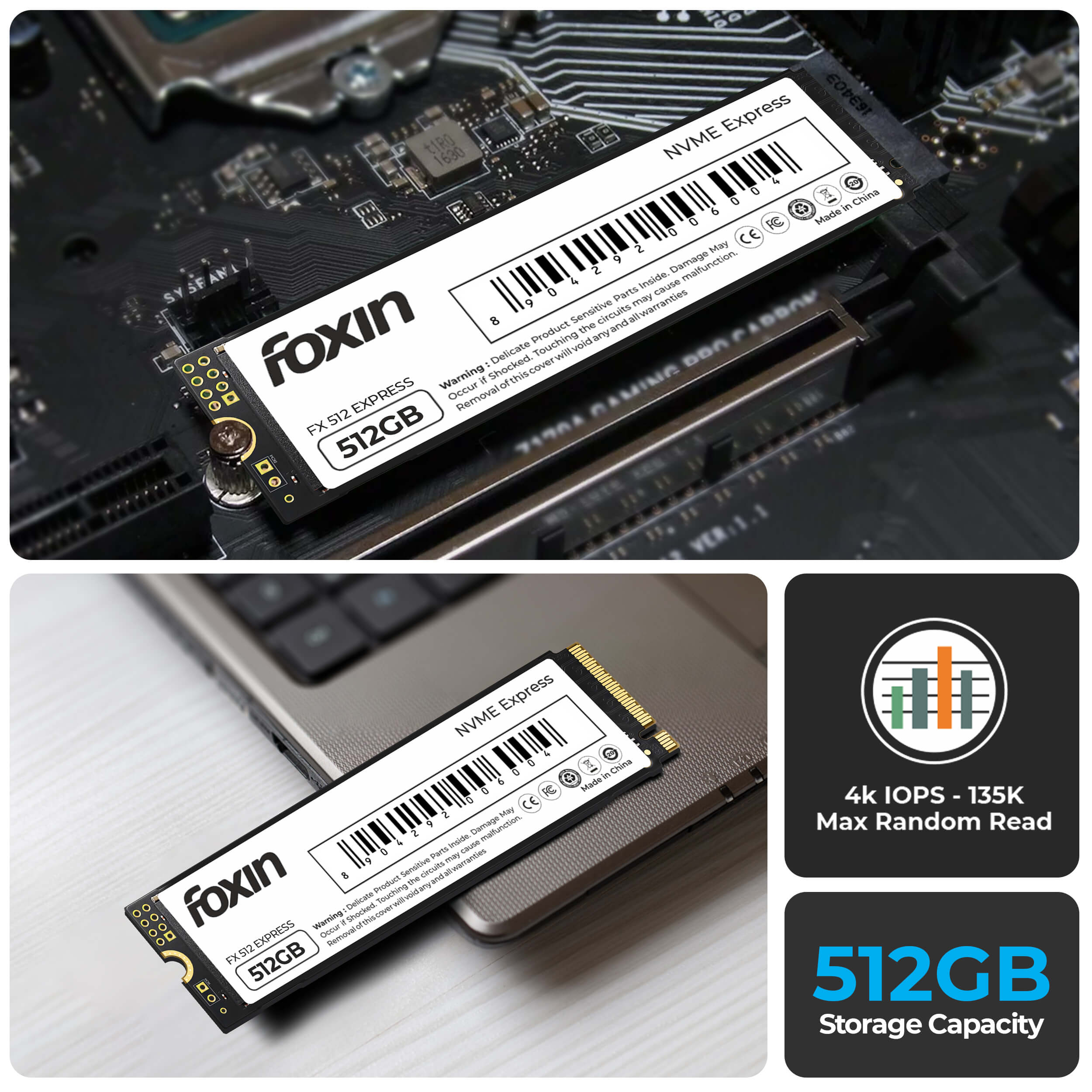 Lightning-Fast Speeds for Peak Performance: Experience superior performance with read speeds up to 3200MB/s and write speeds up to 2700MB/s, perfect for multitasking, gaming, and heavy applications. Equipped with Micron Chipset and SMI Controller: This ssd features a reliable Micron chipset and SMI controller, ensuring durable and efficient storage for your important data. Enhanced Reliability and Durability: Designed for long-term use, this ssd 512gb model is built to last. With a 5-year limited warranty, you can trust in its performance and durability for all your data storage needs. Ideal for Fast and Efficient Data Transfer: Whether you're upgrading your internal storage or need a portable ssd, the Foxin 512GB NVME SSD is the perfect solution. Enjoy maximum random read speeds of 135k IOPS, providing ultra-responsive performance for all your applications. Perfect Upgrade for Laptops and PCs: Boost your device's performance with this ssd for laptop and ssd for pc. The NVME PCIE Gen 3.0 x 4 Lanes interface ensures high-speed data transfer and efficient multitasking.