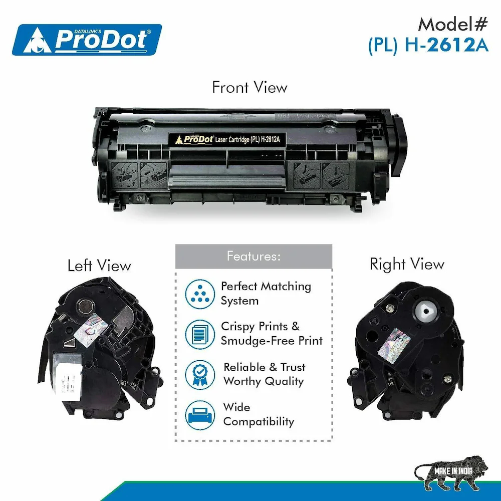 PRODOT Laser Toner Cartridge (PL) H - 2612A For HP & Canon Laserjet Printer Black Ink Toner Powder