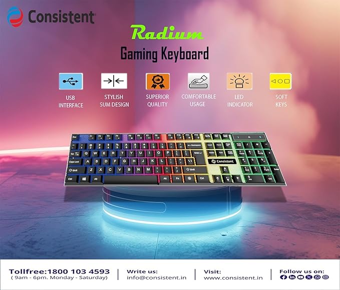 Wired Connectivity: This keyboard features a wired connection for a stable and lag-free typing experience. Radium Branding: Manufactured by the reputed Radium brand, known for its high-quality computer peripherals. Durable Construction: Built with sturdy materials to withstand daily usage and ensure long-lasting performance. Ergonomic Design: Designed with an ergonomic layout to minimise strain and maximise typing comfort. Multi-device Compatibility: Compatible with a wide range of devices, including desktops, laptops, and gaming consoles.