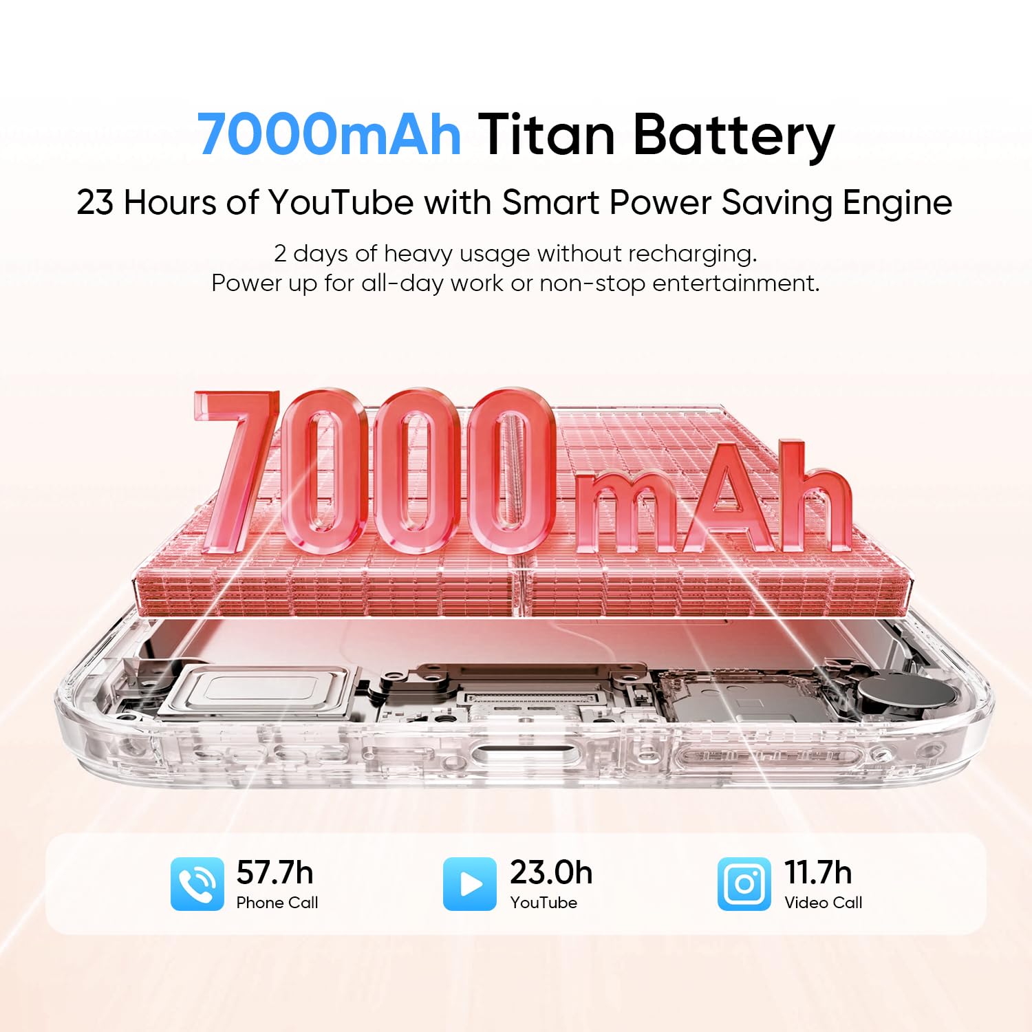 Product Features 1200nit Ultra Bright Display, 7000mAh Titan Battery+ 60W Fast Charge, Al Outdoor Mode, IP69 Pro Top-Tier Waterproof, Military-Grade Shock Resistance |