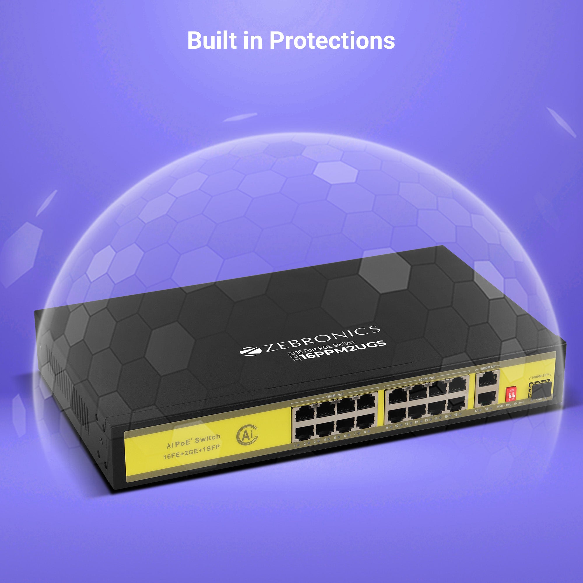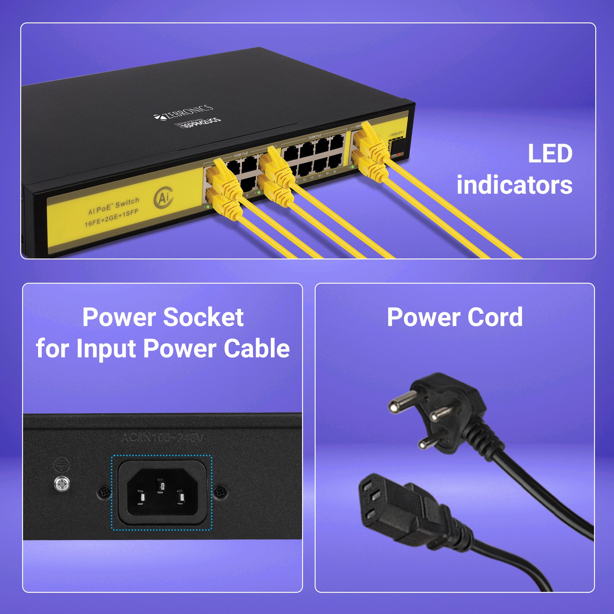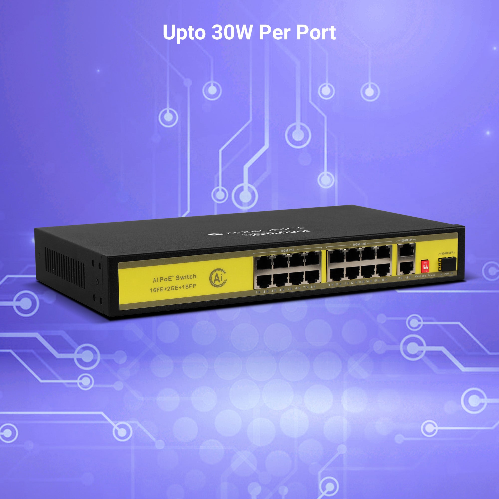 | Connector Type | 16 Ports 100M PoE + 2 Ports 1000M Ethernet Uplink + 1 SFP port | |
