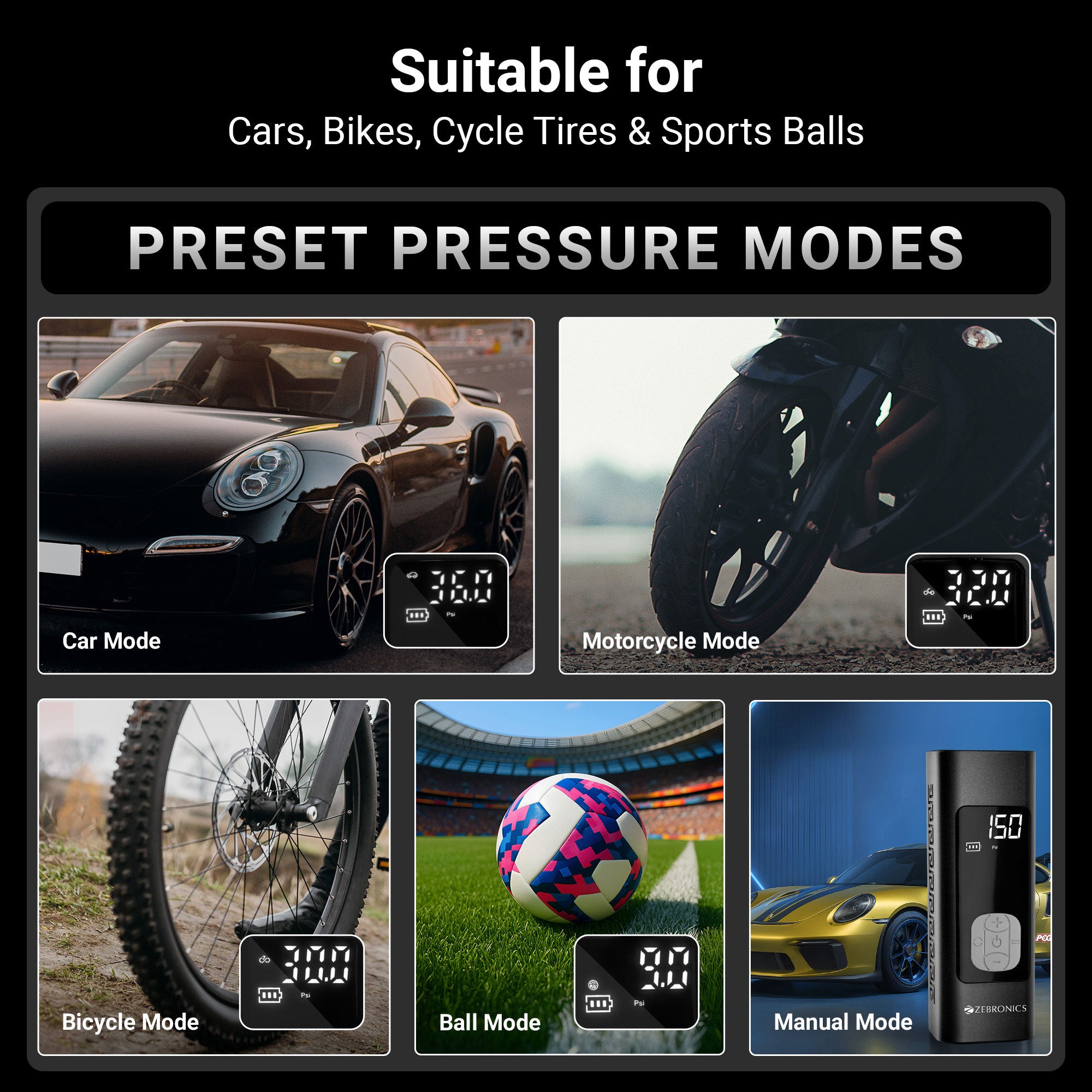 | No of Preset Pressure Modes | Bike / Car / Bicycle / Sports ball | |