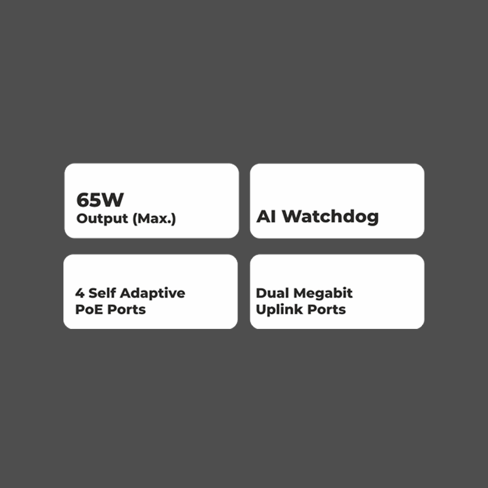 | Connector Type | 4 Ports 1000M PoE + 2 Ports 1000M Ethernet Uplink + 1 1000M SFP Port | |