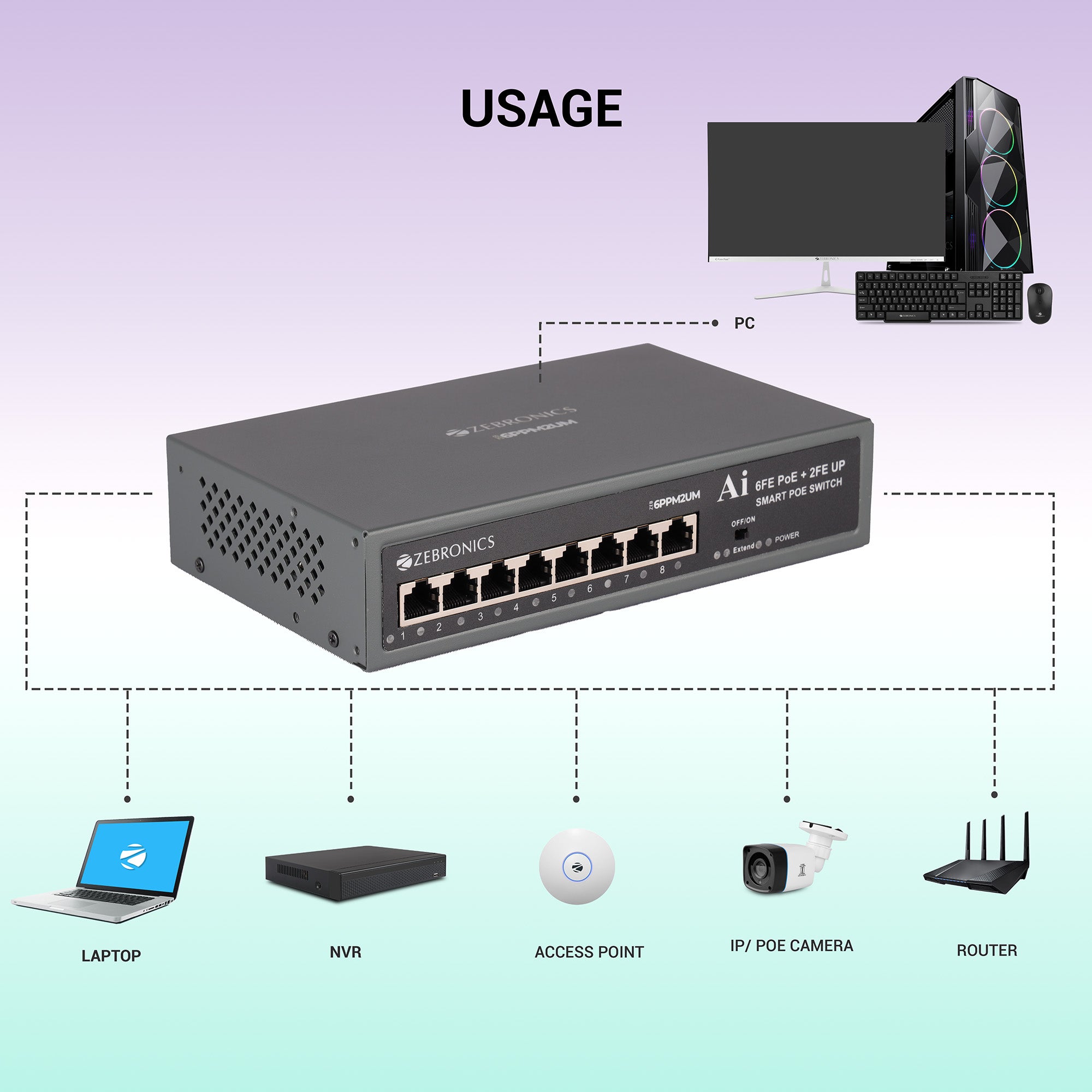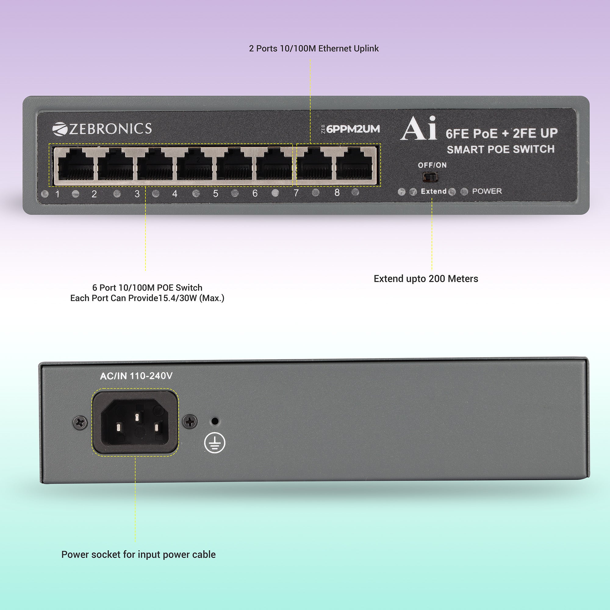 | Connector Type | 6 Ports 10/100M PoE + 2 Ports 10/100M Ethernet Uplink | |