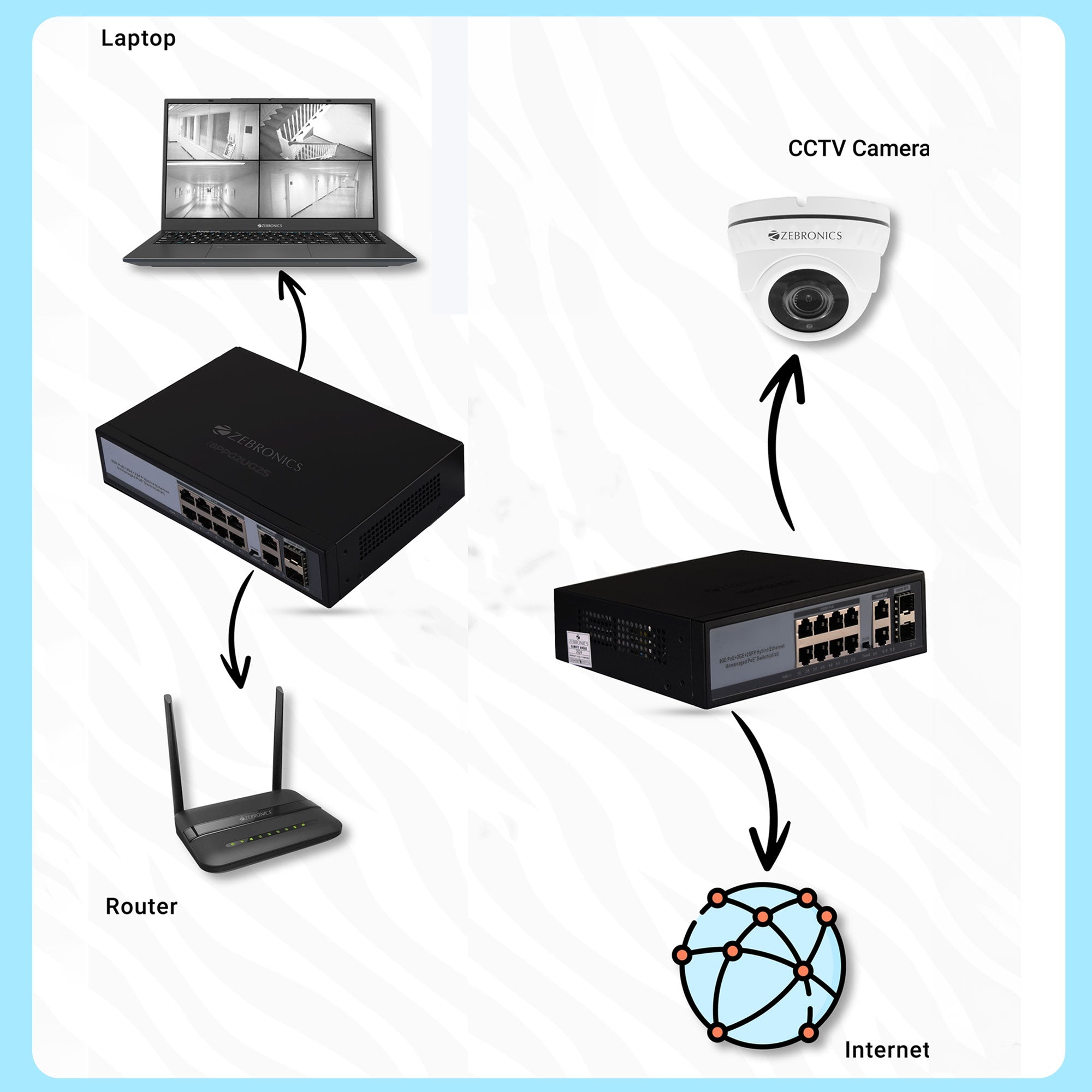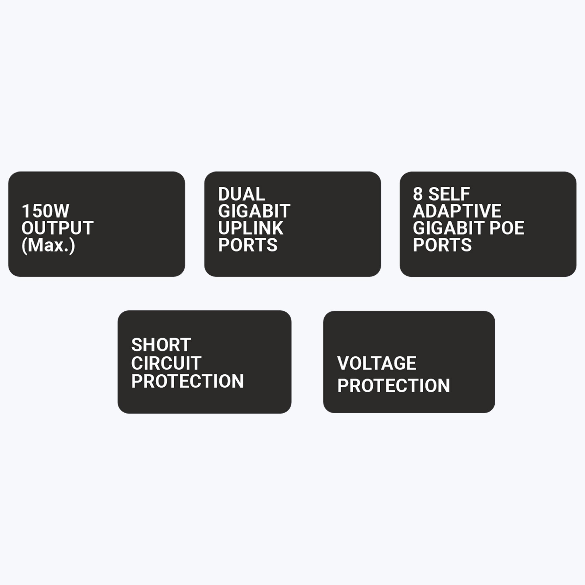 | Power Supply | Input: AC110-240V, 50/60Hz Output: 30W Per Port Power Budget: 150W | |